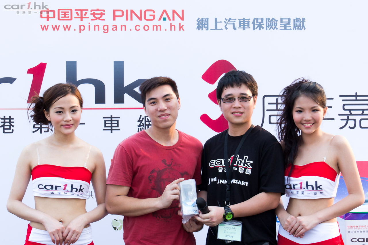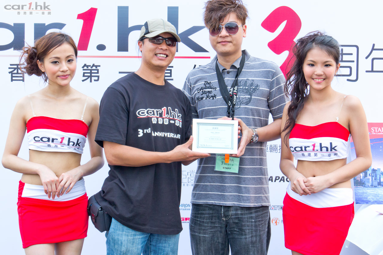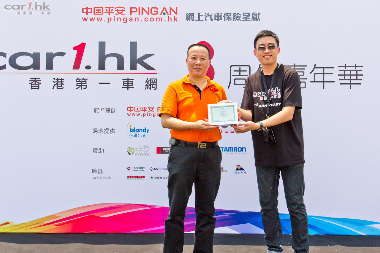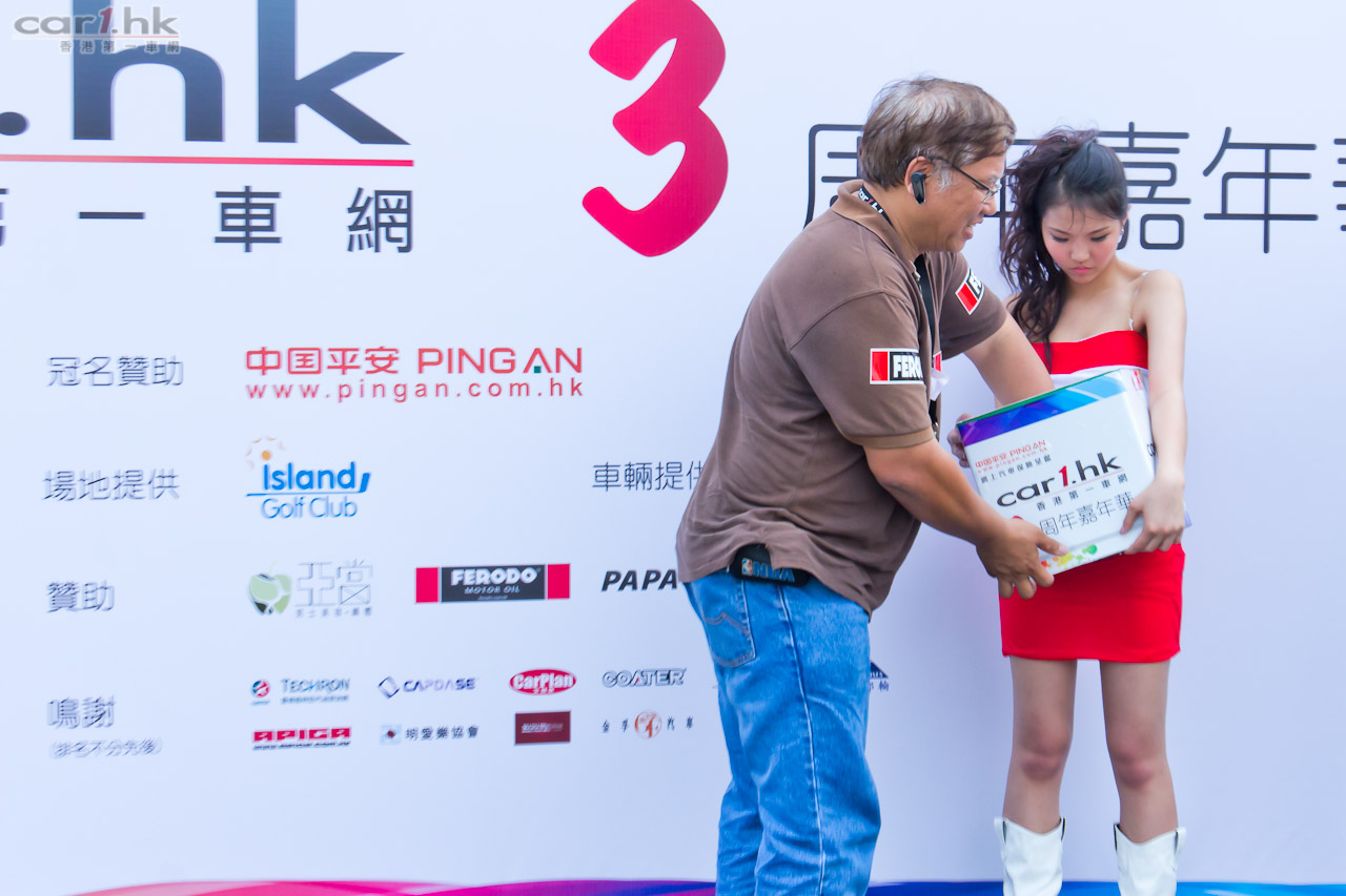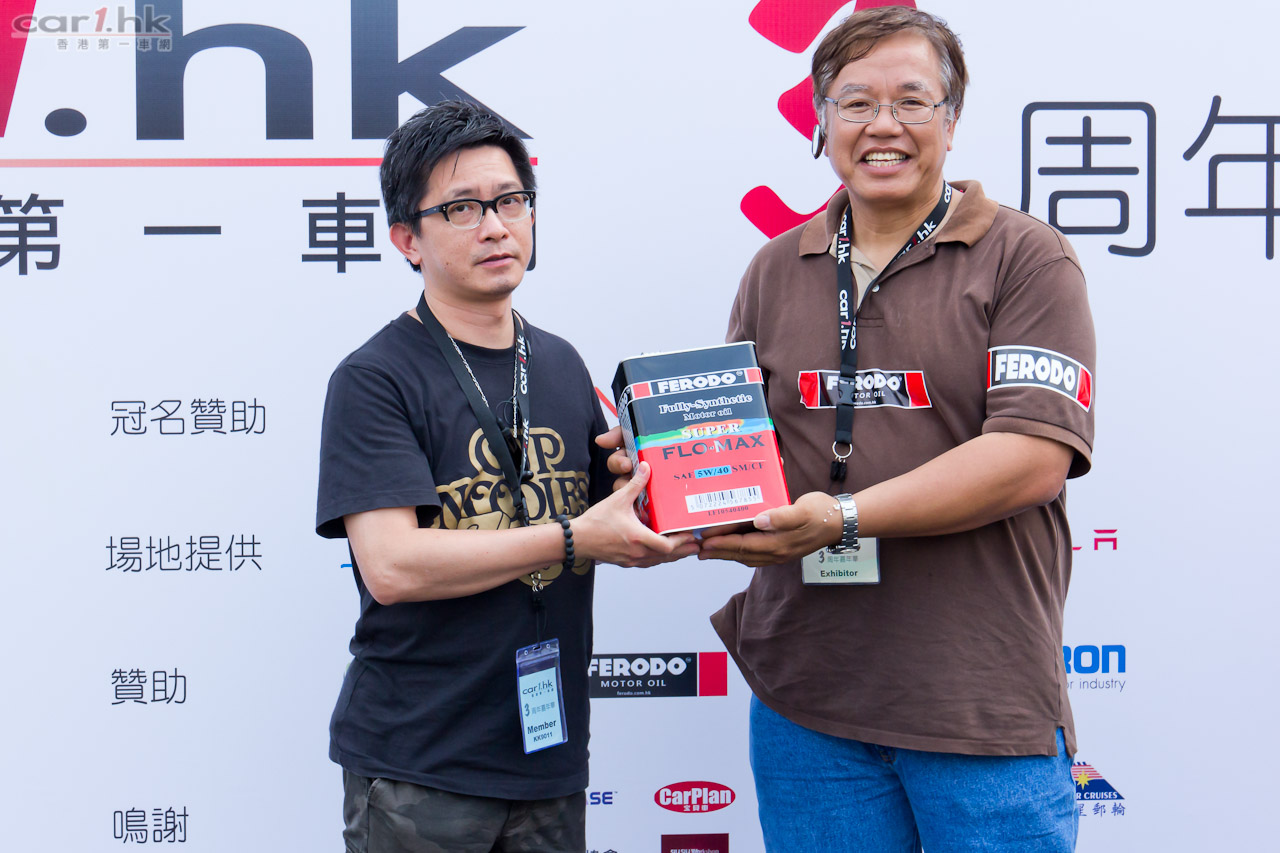 嘉年華當然少不了抽獎吧!除了豐富紀念品外,我們全日總共送出過百份禮物。包括加德士雪佛龍送出的 Techron 引擎清潔效能添加劑、CarPlan Screen Wipes、鈴師傅維修現金劵、Capdase 雙 USB 車用充電器及 Ferodo 全合成機油等等,獎品太多,不能盡錄。當然,少不了終極大抽獎,由 APIGA 送出的摺疊式賽車架、COATER 送出價值 $3,280 和 $5,280 的汽車鍍膜護理服務,以及麗星郵輪送出 2 份總值 HK$8,596 的雙人海上郵輪假期船票。