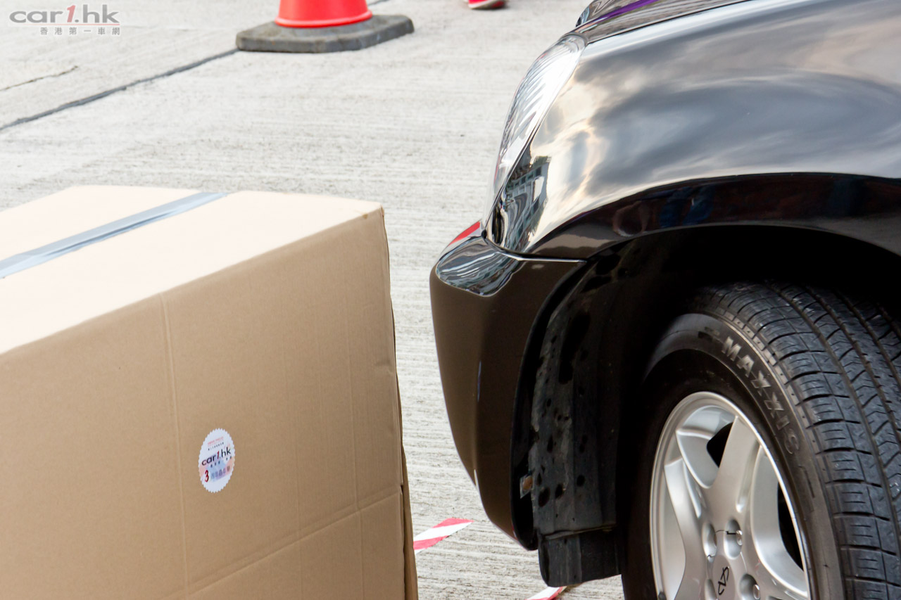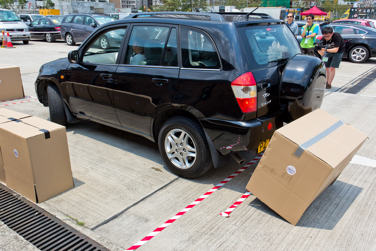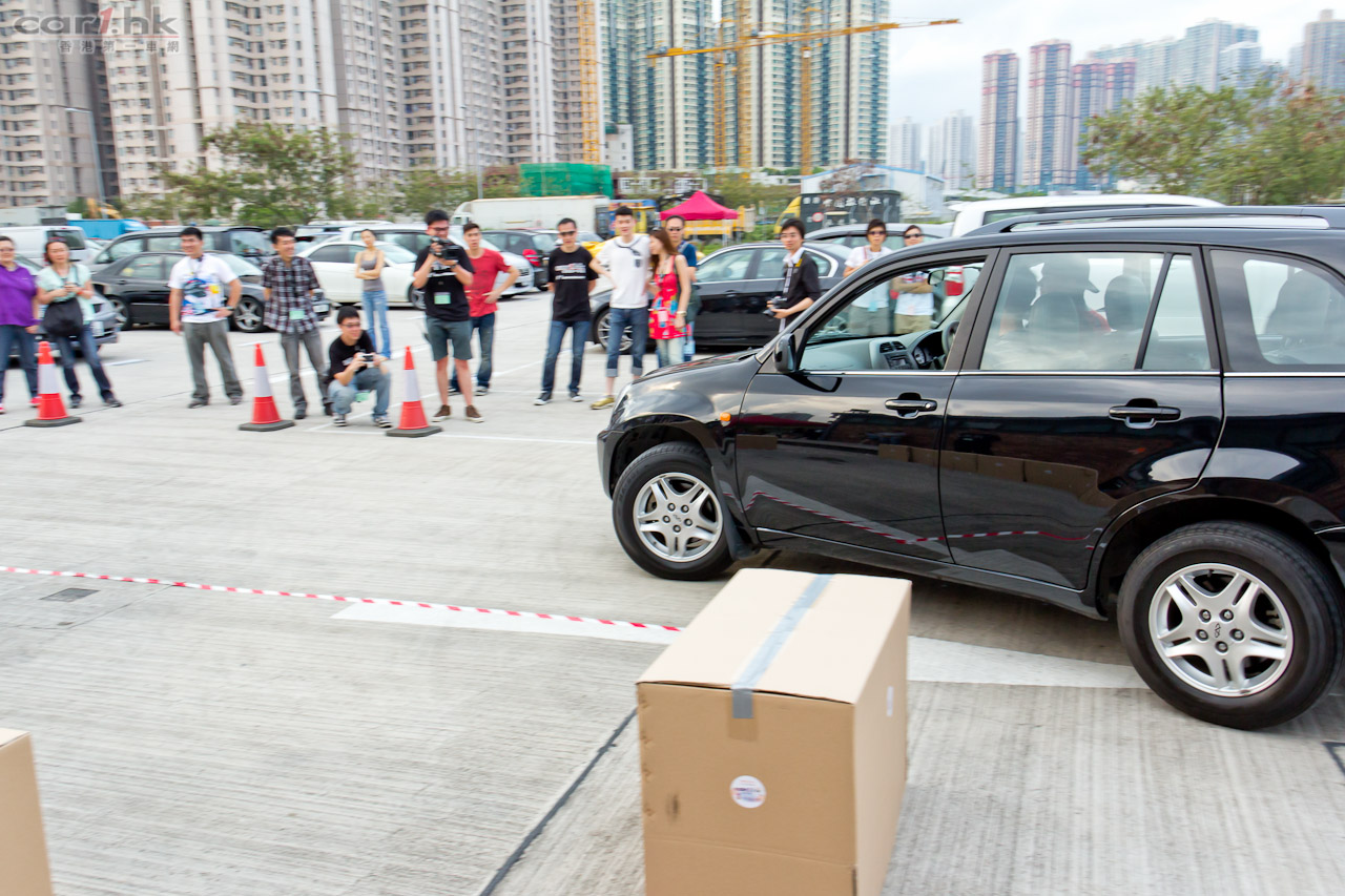 泊車比賽看似容易,其實際位置卻只是剛剛好。而且大會關了車子原有的泊車感應器,所以難度提升不少,更有參加者未能成功泊位。