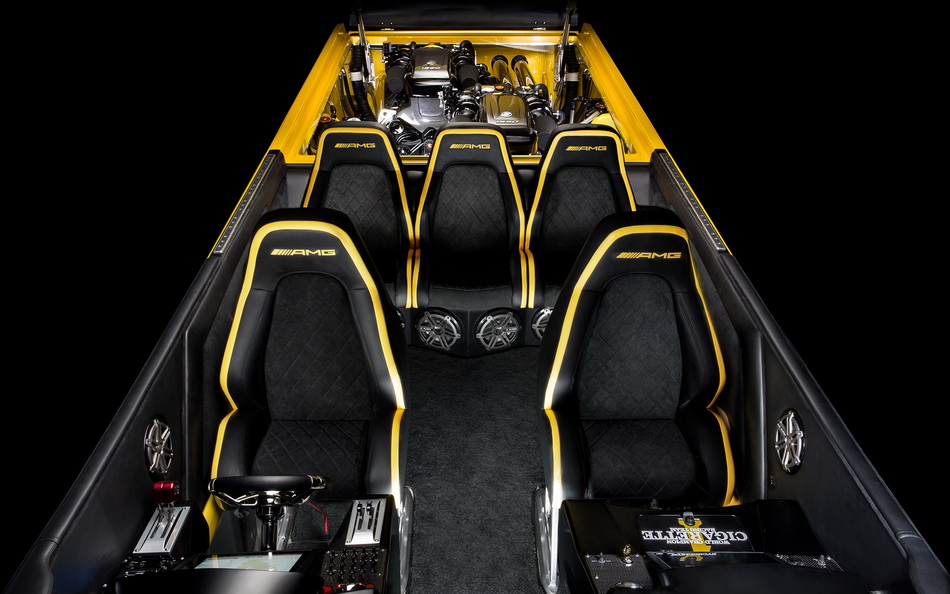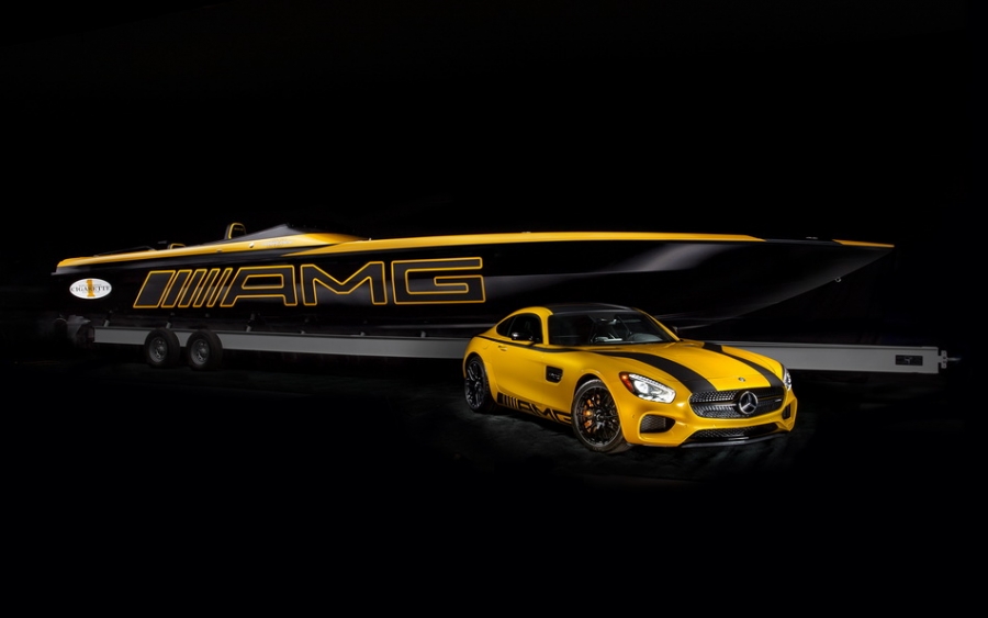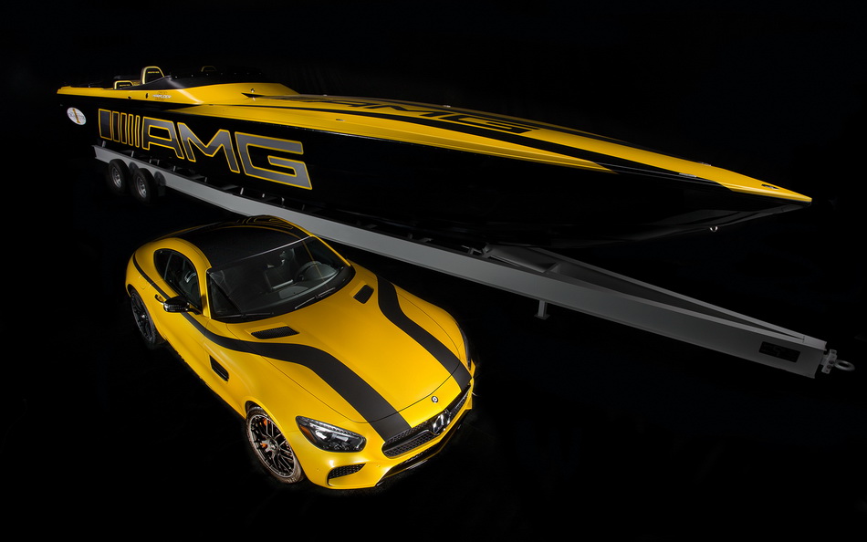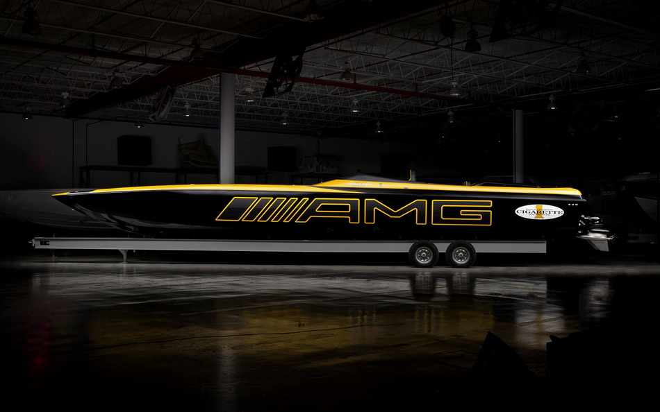 美國競技快艇製造商 Cigarette Racing 最近公開了 50 Marauder GT S 的概念賽艇,這部賽艇與 Mercedes-AMG 合作,其船身外觀概念都以 AMG GT 而來,霧黑線條及陽光黃(Solarbeam yellow)的色調,船身再有顯眼的 AMG 標誌,其比賽格調盡情展現。它的設備亦很豪,有 JL Audio 音響、Alcantara 賽車椅、碳纖維裝飾的儀表板、操控台和兩個 12 吋的 Garmin 導航觸控螢幕。這艘 Cigarette Racing X AMG 概念船採用兩個水星競賽 V8 引擎,可釋放出 1,550 匹,最高時速可達 217 km/h。雖然是概念船,但可以購買的,只需 120 萬美金。