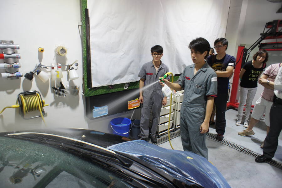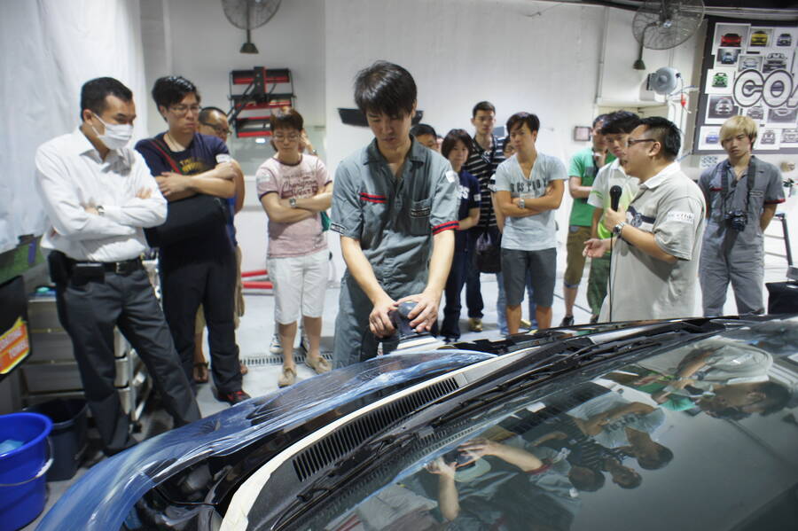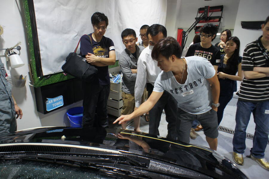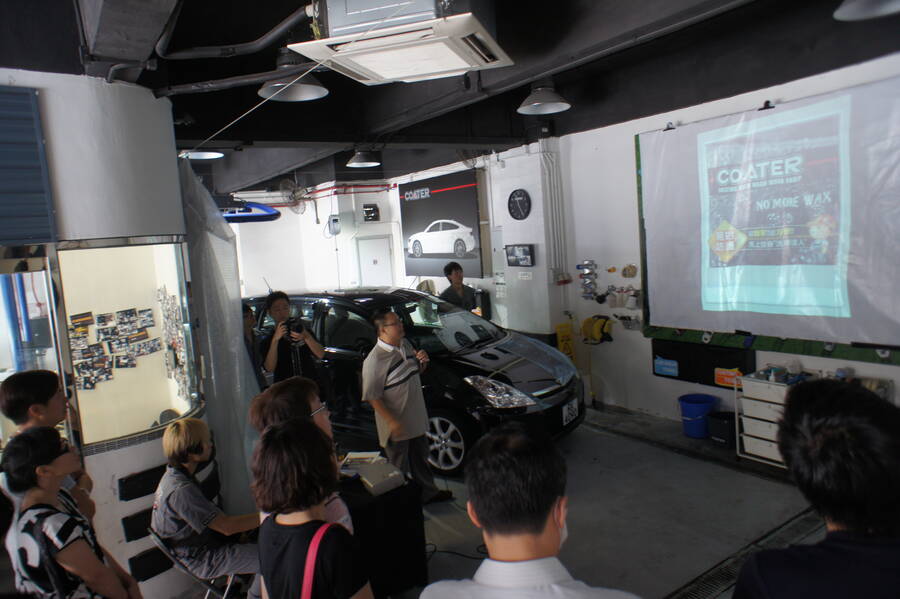經過一輪講解之後, 大會也為各人提供茶點稍作休息。然後 COATER 的技師現場示範了多種不同效果的產品,分別是加強撥水性及防污性的 Optiara,極強玻璃護膜 Clean X-G ,具填補花痕功能的 CleanXX。當日進行示範的汽車滿布俗稱「蜘蛛紋」的抹車花痕,但比較過完成了鏡面處理前及處理後的車身,令人感覺煥然一新,車漆表面花痕神奇地完全消除,並回復原有光澤!