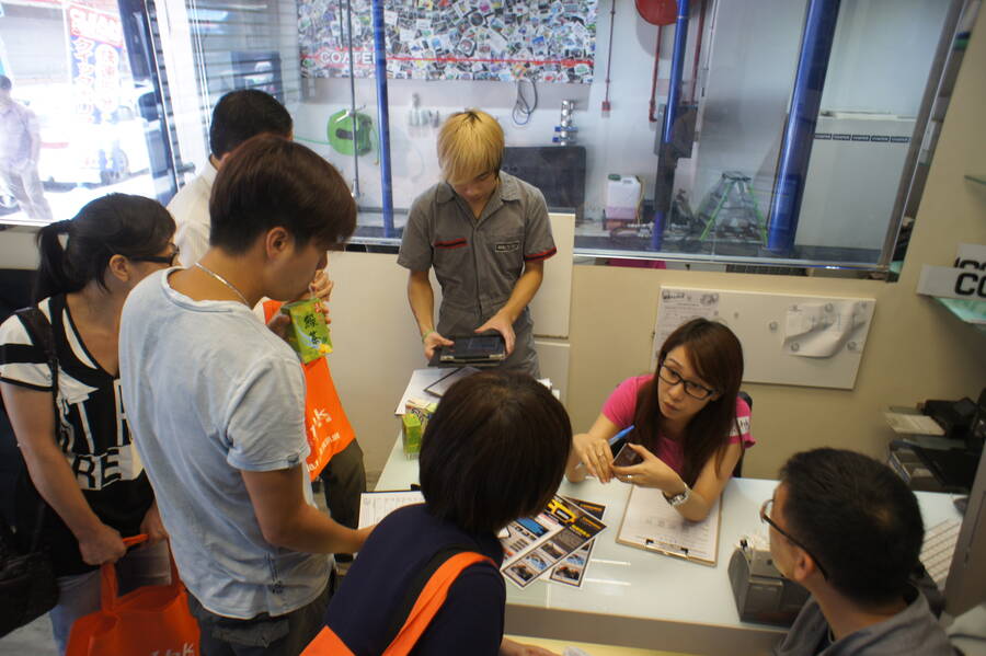 即場登記指定車身護理服務,更可獲額外折扣優待,會員反應十分熱烈,要排隊報名及付款。