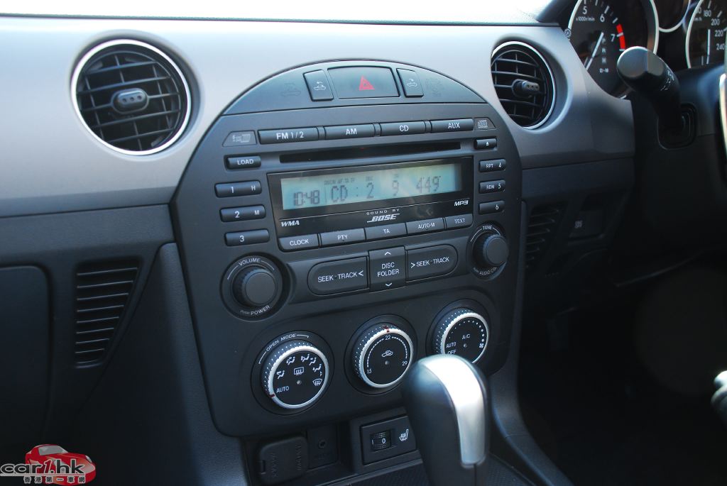中控台接近 90 度垂直配以三環冷氣調校環,帶出 Mazda MX-5 別出心裁一面。