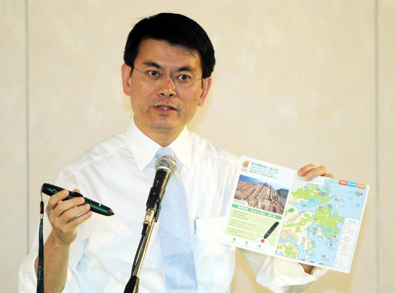 邱騰華早上在香港綠色一面研討會上發表主題演說,向與會者介紹香港郊野豐富的自然景色,並分享香港國家地質公園在保護地質資源和增強公眾認識地質保育方面的成果。