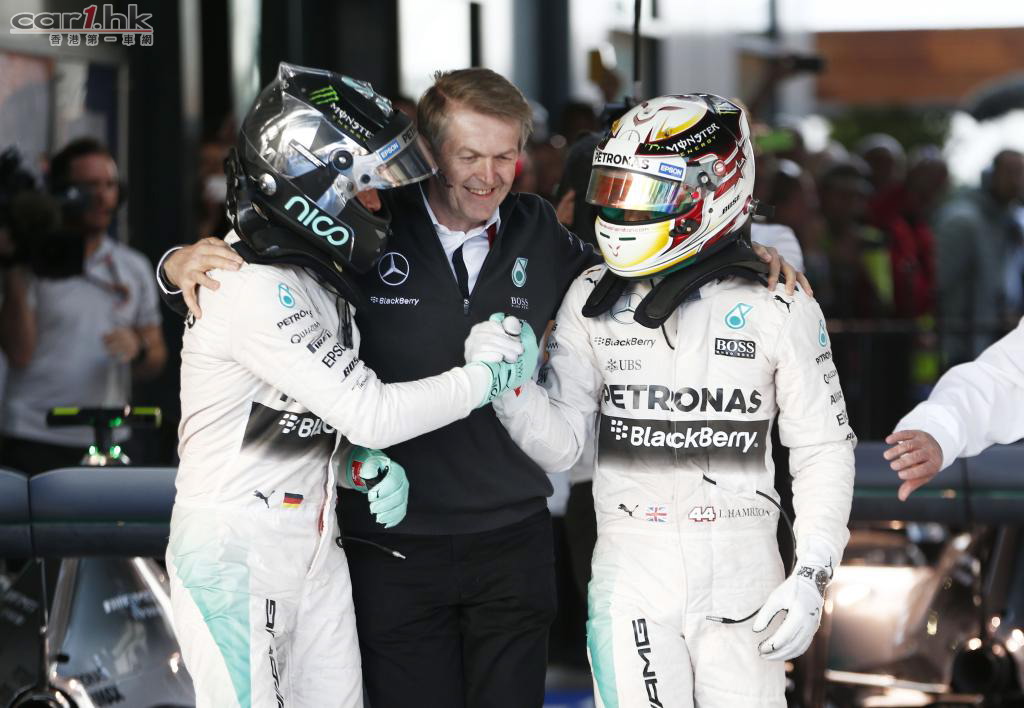 Mercedes-AMG F1 德國羅斯保最後以 1.36 秒比黑帝咸美頓完成比賽,屈居第二位。