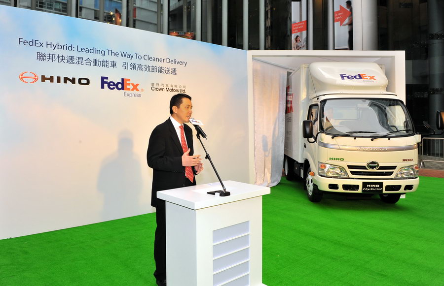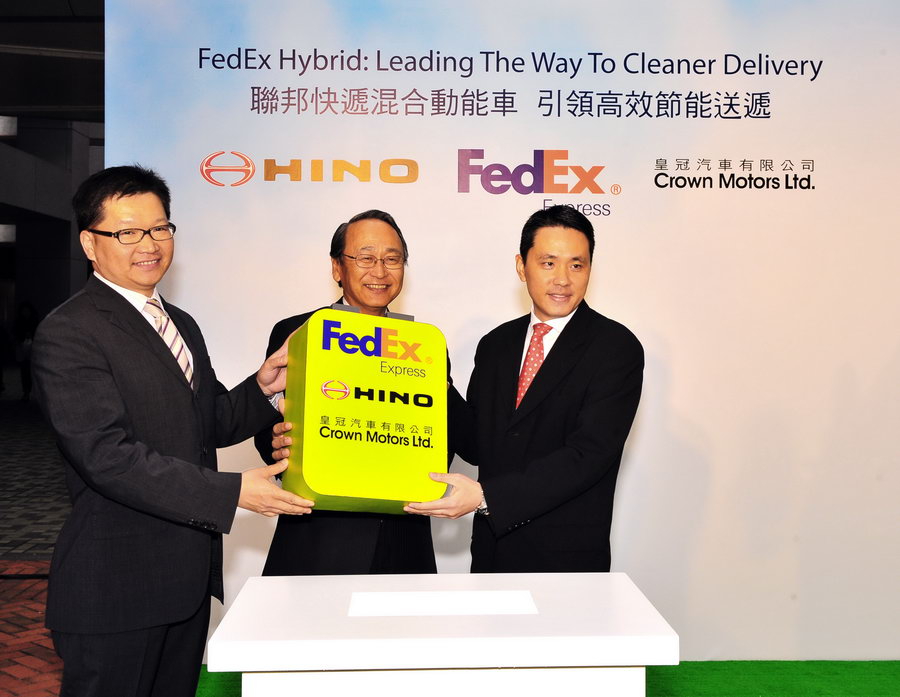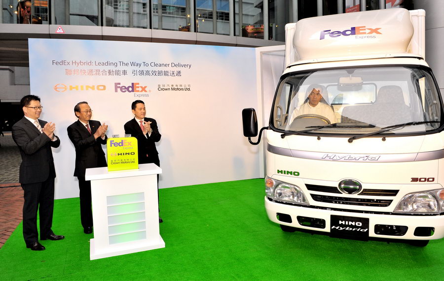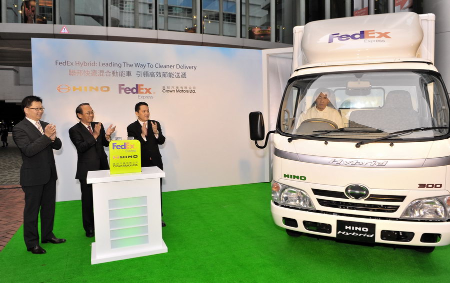 FedEx Corporation(紐約證交所股份代號:FDX)旗下附屬公司兼全球最具規模的速遞運輸公司之一聯邦快遞今天宣佈引進香港速遞業首批商用柴油電動混合動力貨車。兩輛聯邦快遞混合動力貨車由日野汽車生產並由皇冠汽車代理,相比起聯邦快遞現時採用的柴油車輛,有助減低碳排放30%並改善香港環境。
