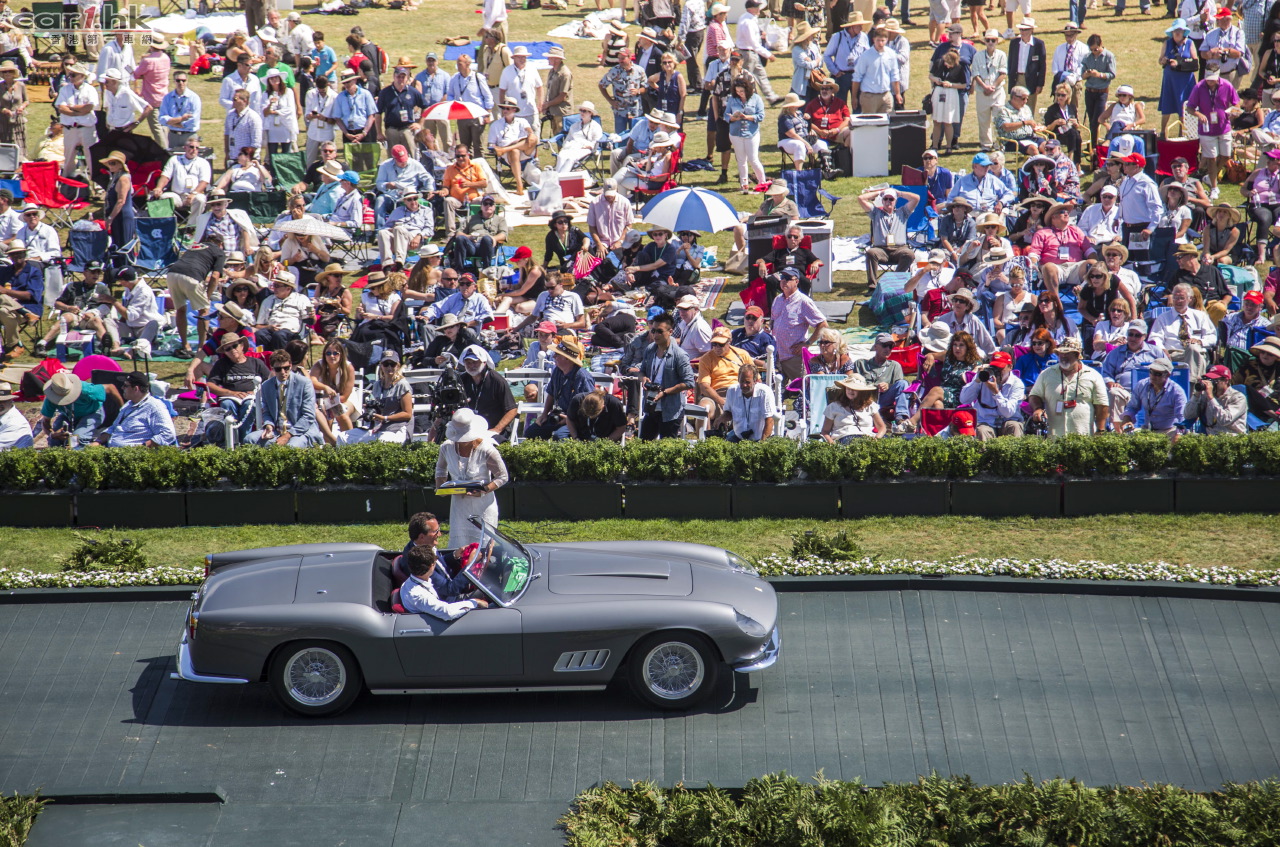 第65屆圓石灘車展(Pebble Beach Concours d’Elegance)彌漫著與眾不同的氣息,清晨海岸的濃霧和清冷的海風交織相伴,天空從黎明起晴空萬里,氣溫也隨之攀升至30°C。圓石灘草坪上的競技方陣蔚為壯觀,超過四十部法拉利車型分佈於今年特別為“榮譽品牌”(Hornored Marque)所創建的四大特殊級別中,它們分別是“法拉利GT”、“法拉利競技”、“圓石灘汽車公路賽中的法拉利”和“法拉利歷史經典”。