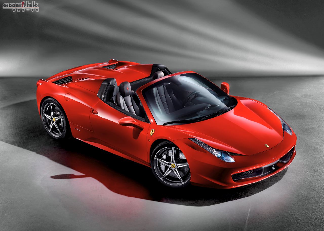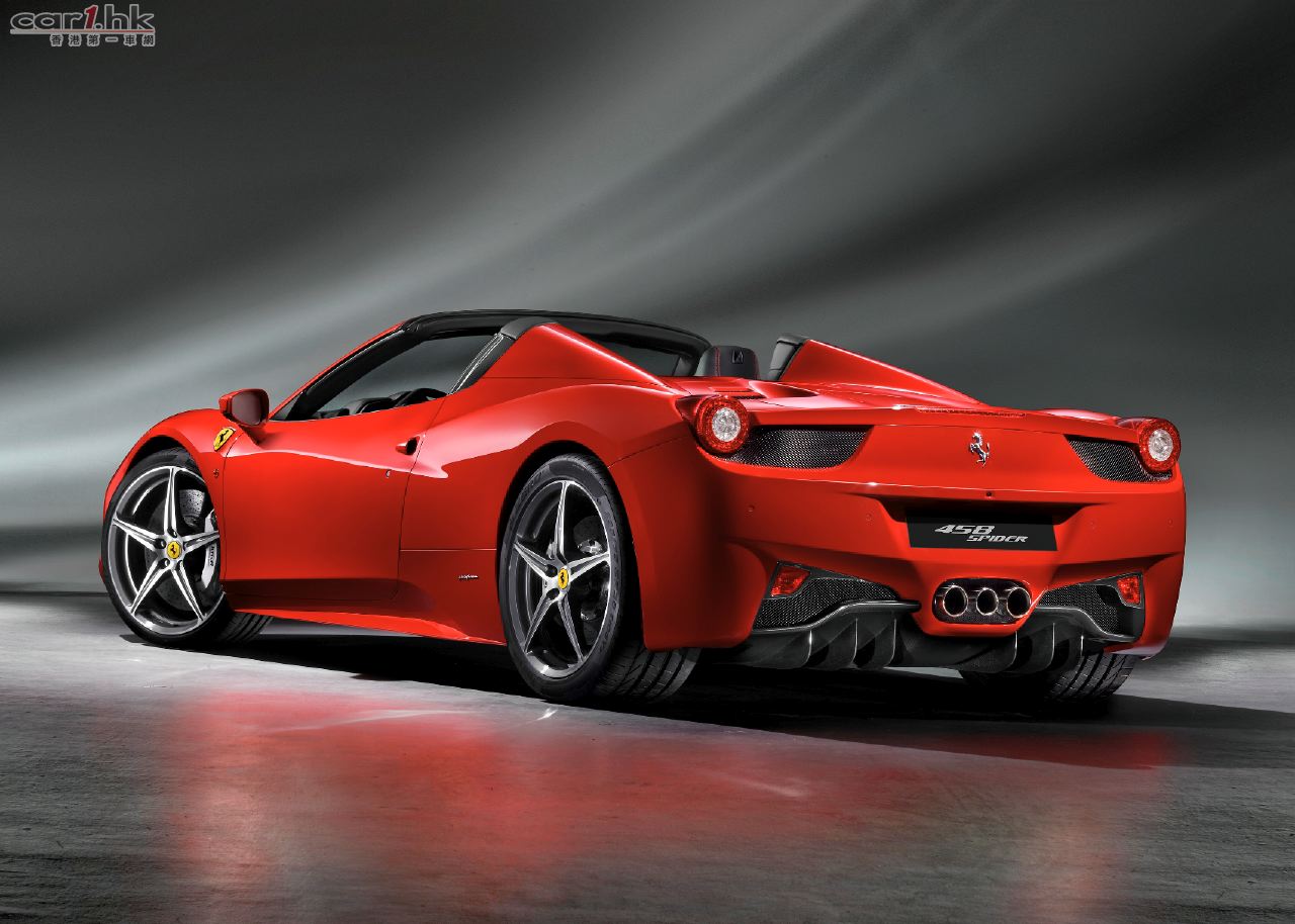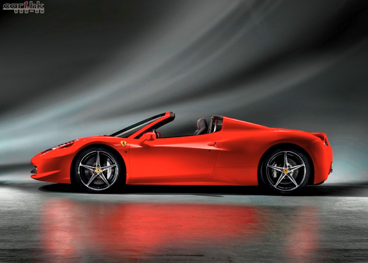 預定在 9 月參加法蘭克福車展的 Ferrari 458 Spider,廠方於日前預先公開它的規格及照片,讓大家即使未能親身前往車展,亦可一睹它的風采!458 Spider 備有廠方專利設計、全面開 / 關僅需 14 秒的可摺疊硬頂,讓它成為全球首部備有這個設計的中 – 後置引擎跑車。此車裝備 4.5L V8 自然吸氣引擎,於 9,000rpm 時能產生最大 425kW,扭力則於 6,000rpm 時達 540Nm。由於整部 458 Spider 的車量只是 1,430kg,比同廠不少車還要輕,所以它能夠有 2.51kg/kW 的極優異的負重 / 輸出比例,亦讓它可於 3.4 秒內完成 0-100km/h 加速,極速更達 320km/h。