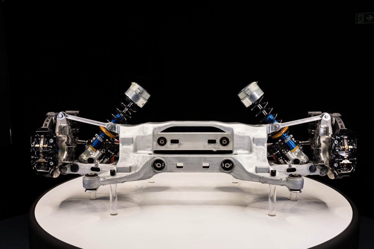 • 後軸採 Ferrari 史上首個「彈性化」副車架:遠距離膠套佈局在側向維持剛性、縱/垂向增加濾震,NVH 顯著下降而不犧牲操控;同時把懸掛逆變器收納其中,善用其質量抑震,維修可獨立拆解。