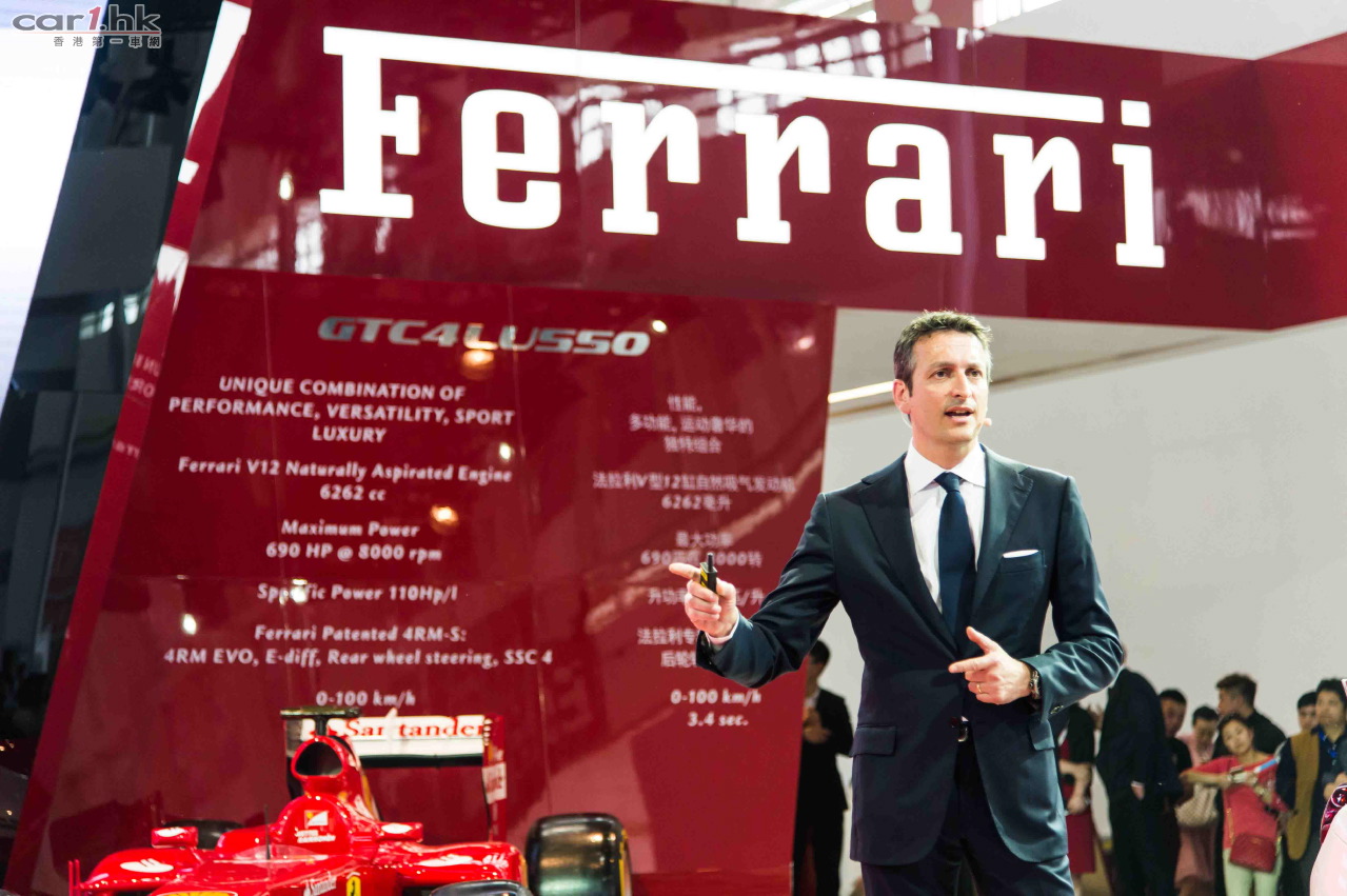 Ferrari GTC4Lusso,強勢登陸北京車展。此次也是Ferrari GTC4Lusso在亞洲市場的首度亮相。該款全新四座超跑在傳承GT跑車多功能運動性的同時,首次採用後輪轉向與四輪驅動結合的尖端技術。作為亞太地區最具規模及影響力的車壇盛世,北京國際汽車展覽會連續多年成為躍馬旗下最新力作完成華麗首秀的不二之選,彰顯了Ferrari 對於中國市場發展與推動的專注及信心。Ferrari 全球銷售及市場高級副總裁加列拉(Enrico Galliera)專程蒞臨了本屆盛會。