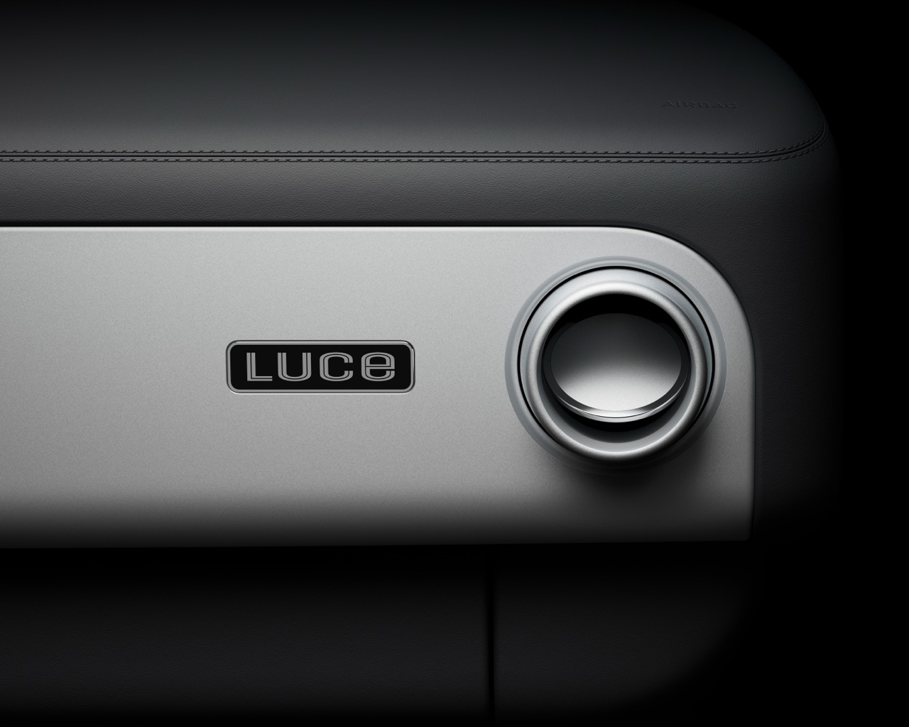 看到 Luce 的座艙你會發現這是一個將純粹感與科技感完美結合的空間。設計團隊捨棄了目前電動車市場盲目追求大螢幕的潮流,轉而回歸觸感與直覺。車廂被構思為一個單一且潔淨的體塊,所有硬體與軟體均同步開發,確保物理結構與數位介面能夠和諧共存。中控台與儀錶盤的佈局極其簡潔,控制元件(Input)與顯示資訊(Output)分佈井然有序。這種設計導向旨在降低駕駛者的認知負荷,讓人在駕駛過程中感受到一種冷靜而集中的氛圍。