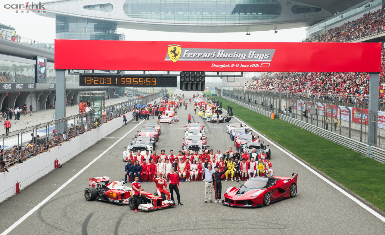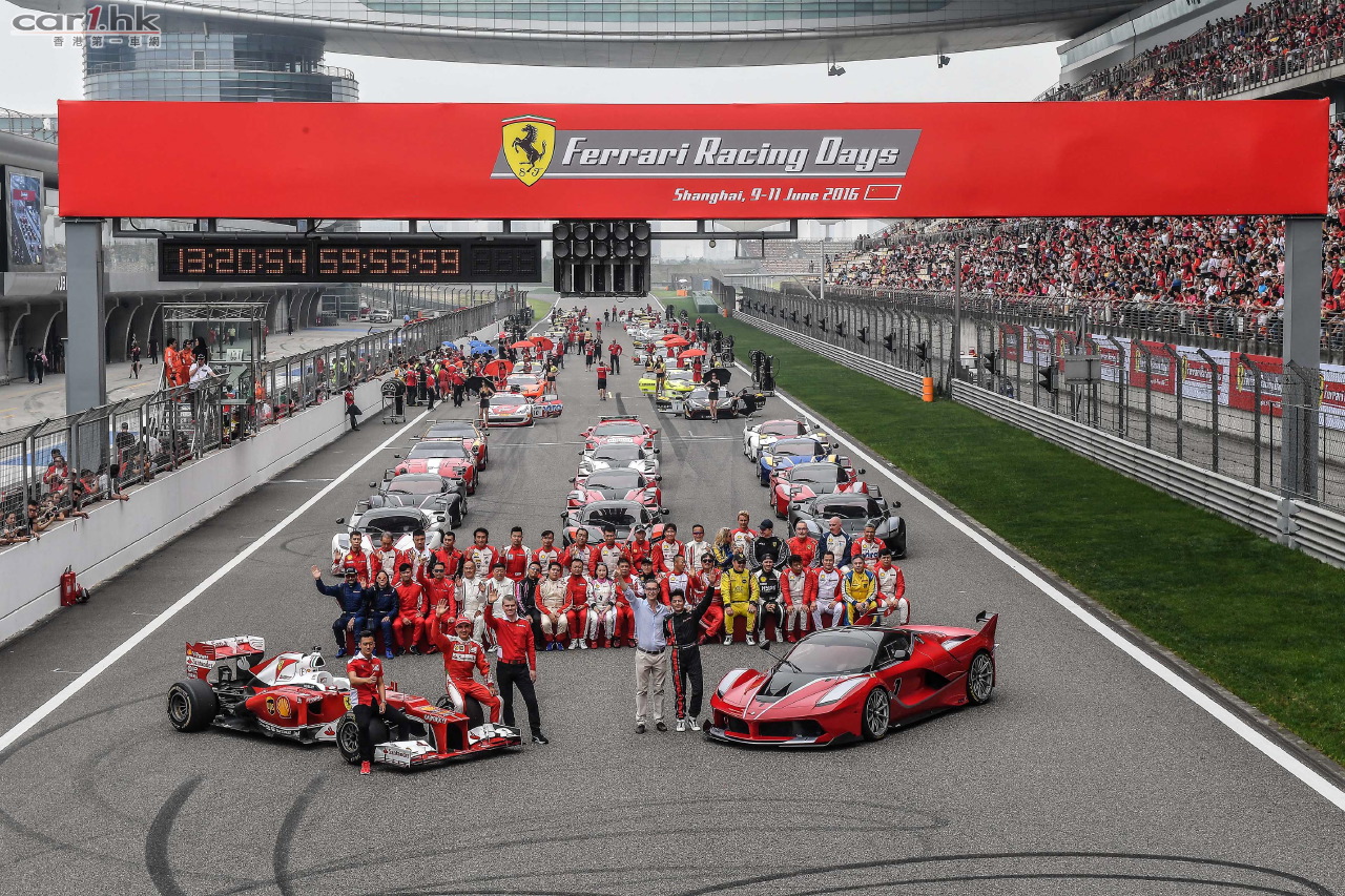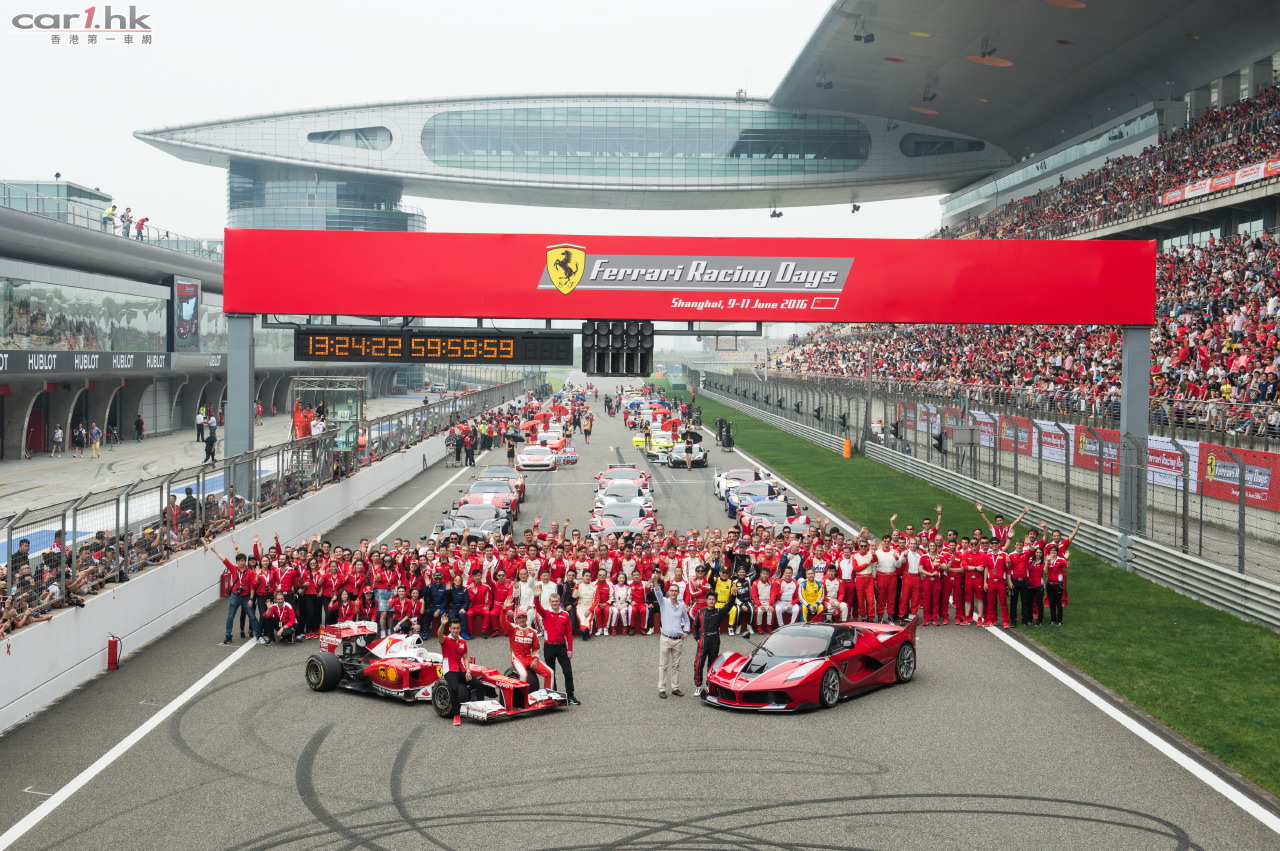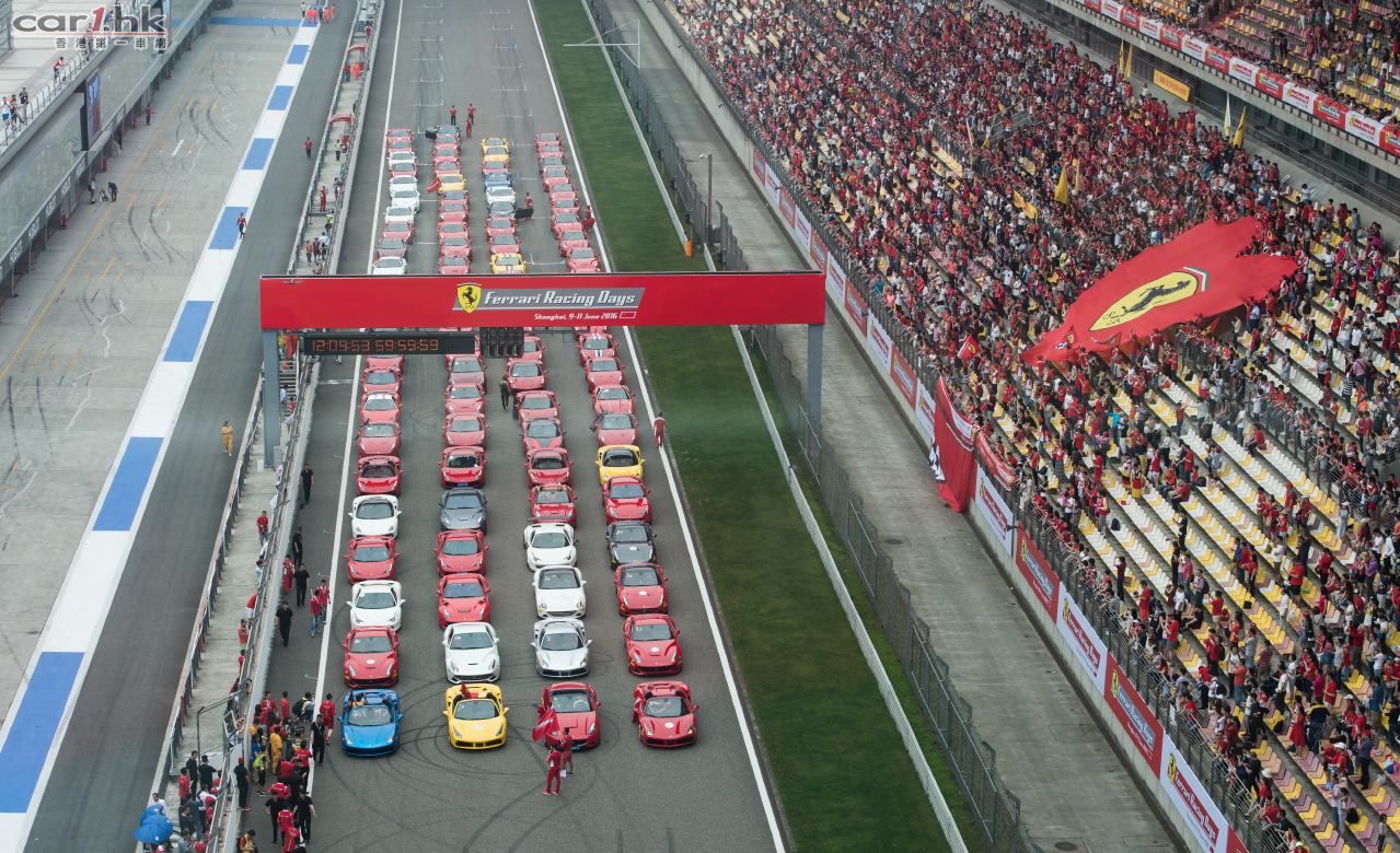 2016法拉利賽道日嘉年華連續第六年強勢登陸申城,40,000名來自五湖四海的法拉利車主、媒體及法拉利愛好者共聚上海國際賽車場,體驗躍馬品牌無與倫比的速度與激情。由F1、XX和挑戰賽組成的法拉利客戶賽車專案精彩紛呈,搭載革新性混合動力,11台法拉利FXX K的躍馬明星車陣熠熠生輝。與此同時,由330 GT 2+2、Testarossa、512 BBi領銜的躍馬經典車型,攜手LaFerrari、Enzo、F12tdf等限量版車型傾情助陣,F1紀念車型傾力呈現,更有身為FXX K車主的著名歌手及演員郭富城先生、GT賽事車手及法拉利F1車隊試車手Andrea Bertolini以及法拉利車手學院的中國天才少年車手周冠宇紛紛蒞臨加盟,共同慶祝屬於法拉利賽道文化及生活方式的不朽激情。