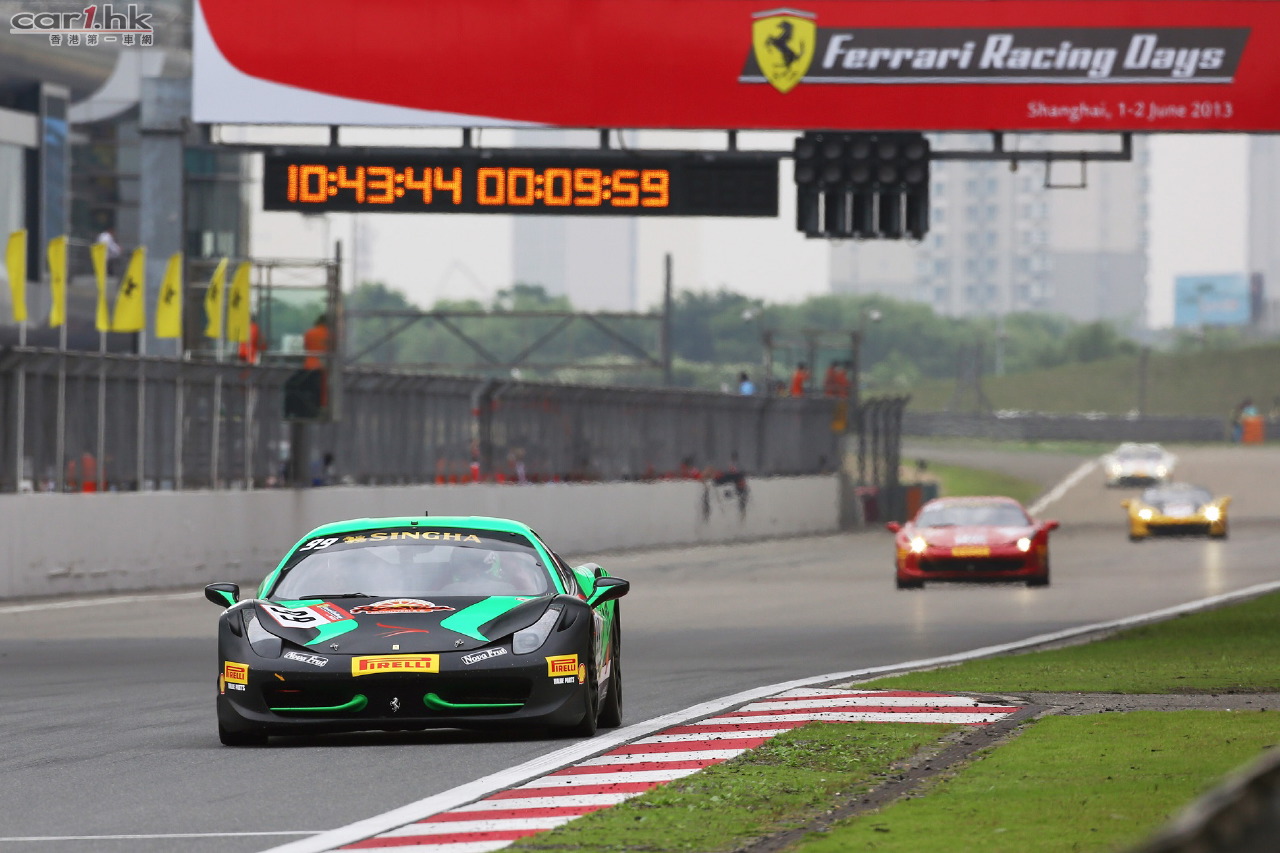 2013年法拉利倍耐力杯亞太挑戰賽第三站比賽在法拉利賽道日嘉年華中精彩上演,共有32名車手駕駛著458 Challenge賽車同場競技,為眾多到場的法拉利車迷們獻上了一場精彩激烈的周末大戰。在法拉利倍耐力杯亞太挑戰賽首場正賽中,Max Blancardi(意大利)憑借卓越實力在國際級別組中登頂;倍耐力杯挑戰賽中Ringo Chong(新加坡)率先沖破終點線,Pasin Lathouras(泰國)和Alain Li(中國香港)緊隨其后;在殼牌杯挑戰賽組別中,Eric Cheung(加拿大)力壓Gregory Teo(新加坡)和 Junhan Zhu(中國大陸),勇奪第一。第二場正賽競爭更加激烈,Keita Sawa(日本)在國際級別組中最終折冠;倍耐力杯挑戰賽中Ringo Chong(新加坡)再次奪冠,Alain Li(中國香港)和Philippe Prette(中國香港)分獲二三位;在殼牌杯挑戰賽第二場正賽中,Eric Cheung(加拿大)衛冕成功,亞軍和季軍獲得者分別是David Tjiptobiantoro(印度尼西亞) 和Gregory Teo(新加坡)。