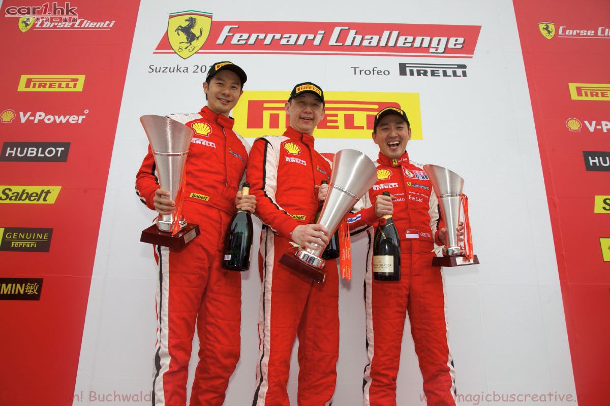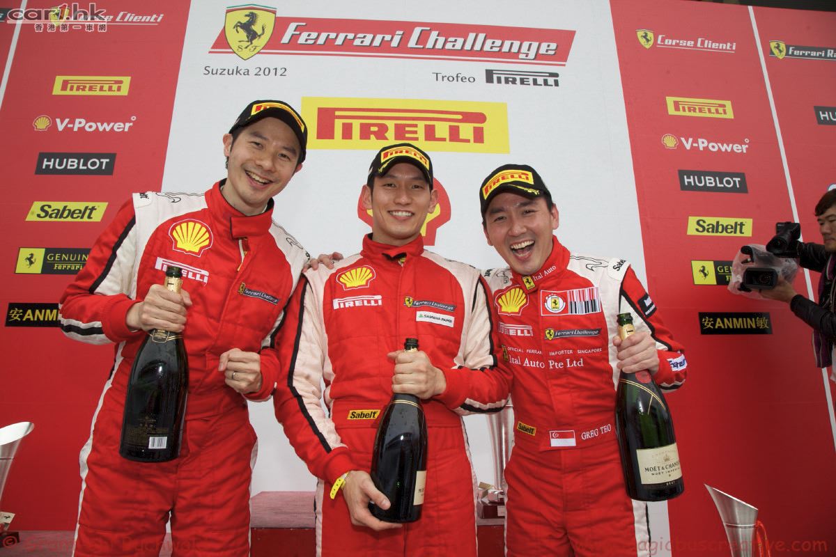 2012 年法拉利倍耐力杯亞太挑戰賽鈴鹿首戰共吸引到 31 位車手參與角逐這項賽事,他們在來自於意大利馬拉內羅的技術團隊、工程師和賽事組織者們的支持下,為眾多在場的法拉利車迷們獻上了一場精彩刺激的周末大戰。嘉賓車手 Mika Salo 還在周日正賽中駕駛 458 Challenge,和參賽車手們同場競技、一較高下。現場超車畫面和歡呼聲頻現,車手們駕駛著 458 Challenge 你追我趕,場面分外激烈。