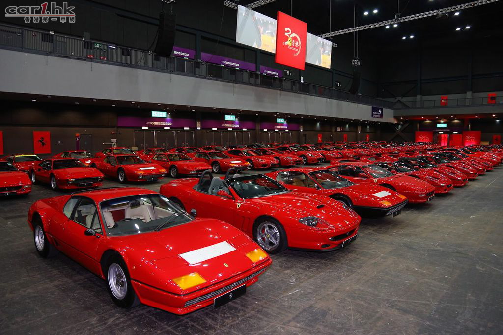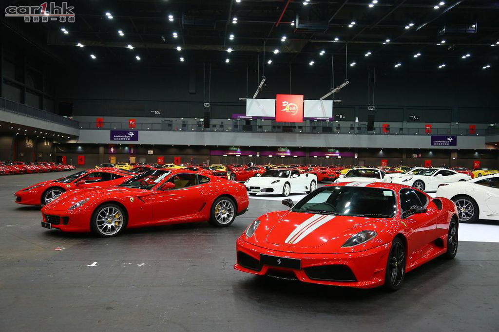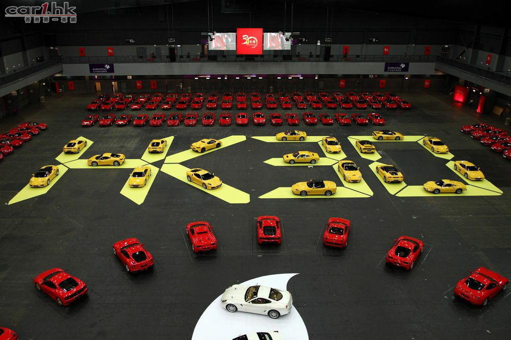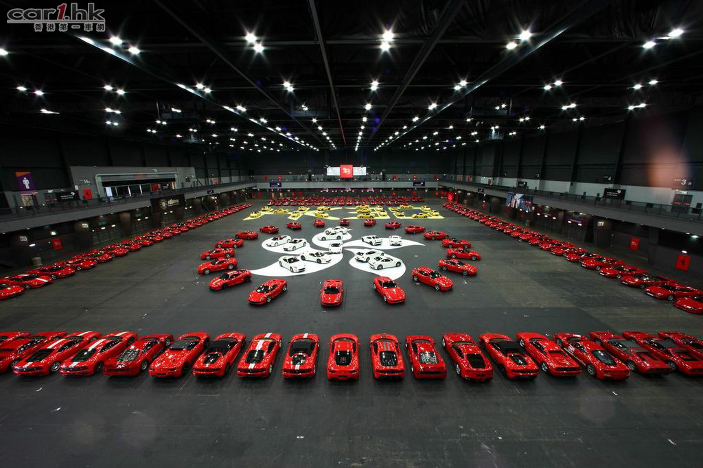 在亞洲博覽館內,當日展示的600台法拉利車輛已打破單一地區集合最多法拉利車輛的香港及大中華區記錄。為答謝香港這個融匯中西的城市在過去三十年對法拉利的支持,會場內的法拉利製出具香港區旗特色的紫荊花圖案。展示的法拉利車型更包括眾多不同的範疇,除所有法拉利現有車型外,亦有經典系列的195 Inter,365 GTC,Dino等車型。當然亦不乏充滿賽車元素的客戶賽車型號如458 Challenge賽車,及極少在賽道外亮相的599XX和FXX Evolution。在這個特別的晚上,來賓得以近距離觀賞這一眾稀世的法拉利車型。