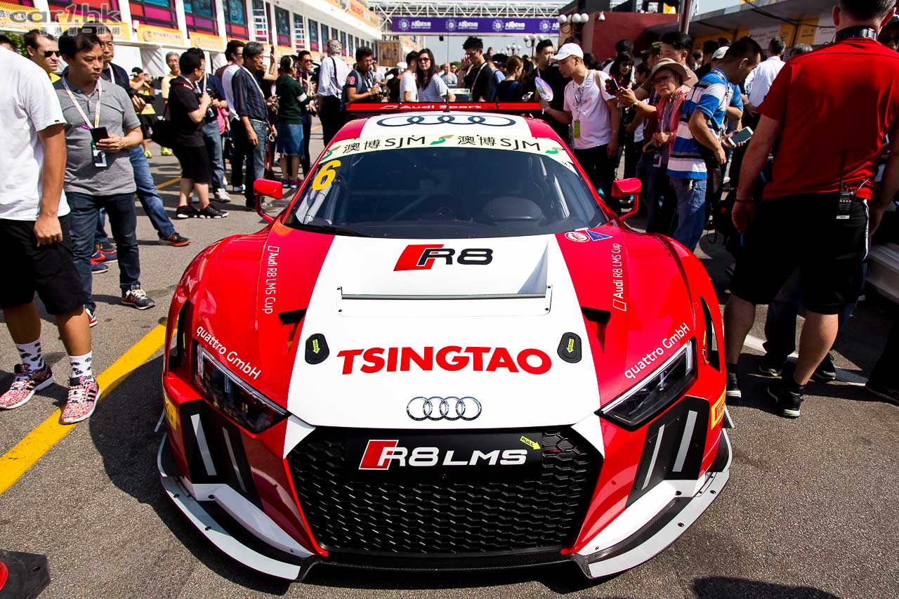 裡本(Romolo Liebchen)在 Audi 車房還不斷講解全新 R8 LMS 在氣動力學上的轉變,同時在避震系統作出一定強化,令這部車攻彎更得順暢。因此,在比賽中可以看到 R8 LMS 在山路攻彎是非常強勁,相比其他身至笨重的 GT,R8 LMS 可以有更遲的煞車時機。還介紹了新車在安性方面絕不妥協,要戰車夠快之餘亦要有安全性,在設計上新車車頂會高了一點,有助提升救援時的效率。當中還提及,基於 FIA GT World Cup 賽例規定這部新車的引擎效率需要被控制,所以在是次比賽中未能完全解放真正實力出來。