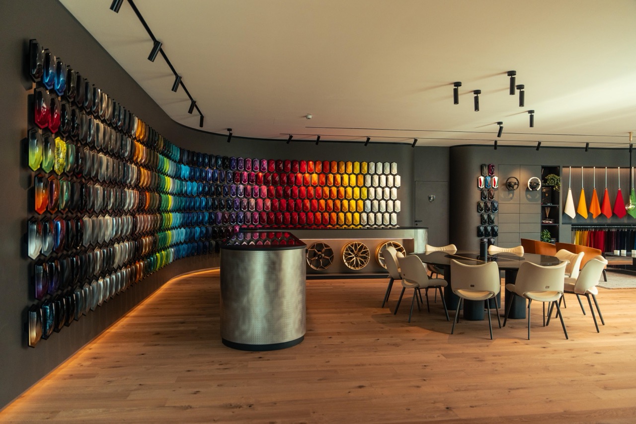 在 Ad Personam 的世界裡,顏色不止於調色盤,而是技藝的極致體現。「Diamond Coating」 以真鑽粉末混入透明塗層中,當光線折射時散發出無法用金屬漆模仿的晶瑩反光,每一輛都如珠寶般閃耀。而 「Crystal Effect」 則是以手工多層疊漆技術打造,光影在車身曲線間流動變化,讓每一次視角都呈現新的層次感。