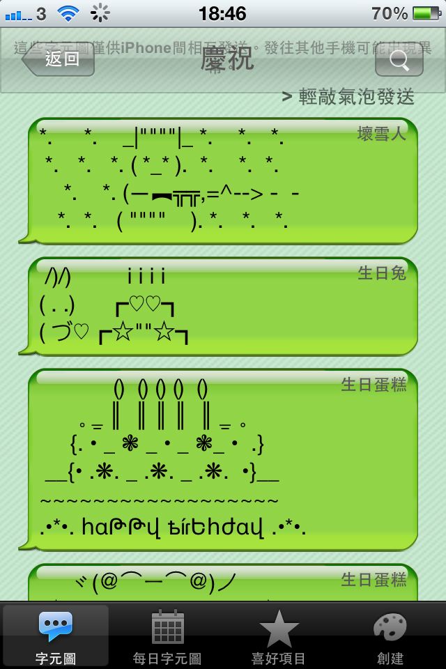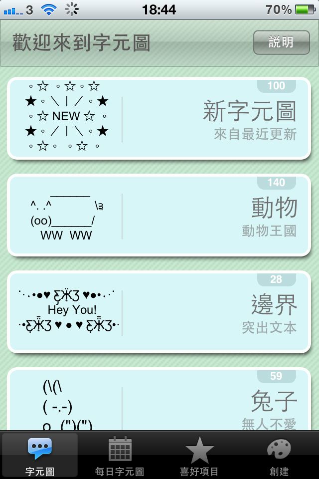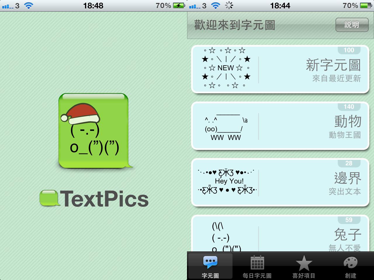 每到不同節日,手機就會收到很多的祝賀短訊,其中有些特別短訊充滿搞笑的字元圖案,所以很多時都會把這些短訊儲存起來。現時介紹的這款 TextPics 就有由字或標點符號砌出來的圖案,而且還有不同的主題,例如:動物、兔子、慶祝、食物、萬聖節和表情等等。以後想傳短訊時特別一點,這個 App 就絕對可以幫到大家。