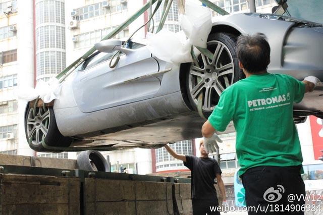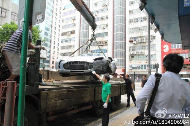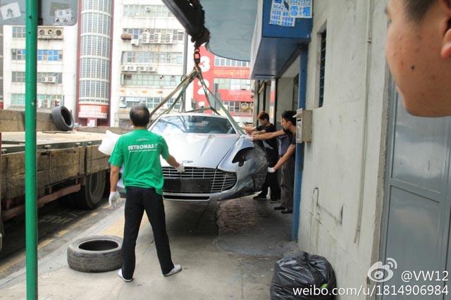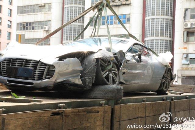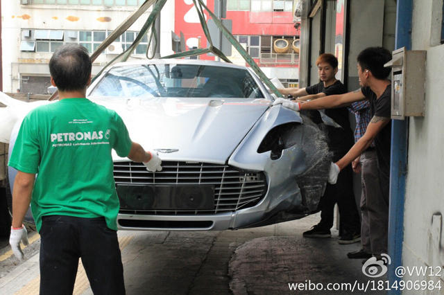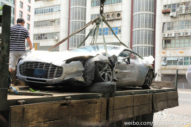 全球限量只有 77 輛的 Aston Martin One-77,在中國有 5 名富豪擁有,其中一位車主日前駕駛名車來到香港,但卻發生了意外,運送維修途中被網民拍下照片,幸好事故並沒有任何人受傷,但車子的左前方沙板與泵把已經嚴重撞爛,雖然仍然有得救,不過特製的鋁合金車身和碳纖維底盤,相信要運回原廠才能完全維修。Aston Martin One-77 採用 7.3 升 V12 汽油引擎,可輸出最大馬力 750 匹及最大扭力 750 牛頓米,0 至 100km/h 加速只需 3.7 秒,極速可達 320km/h。