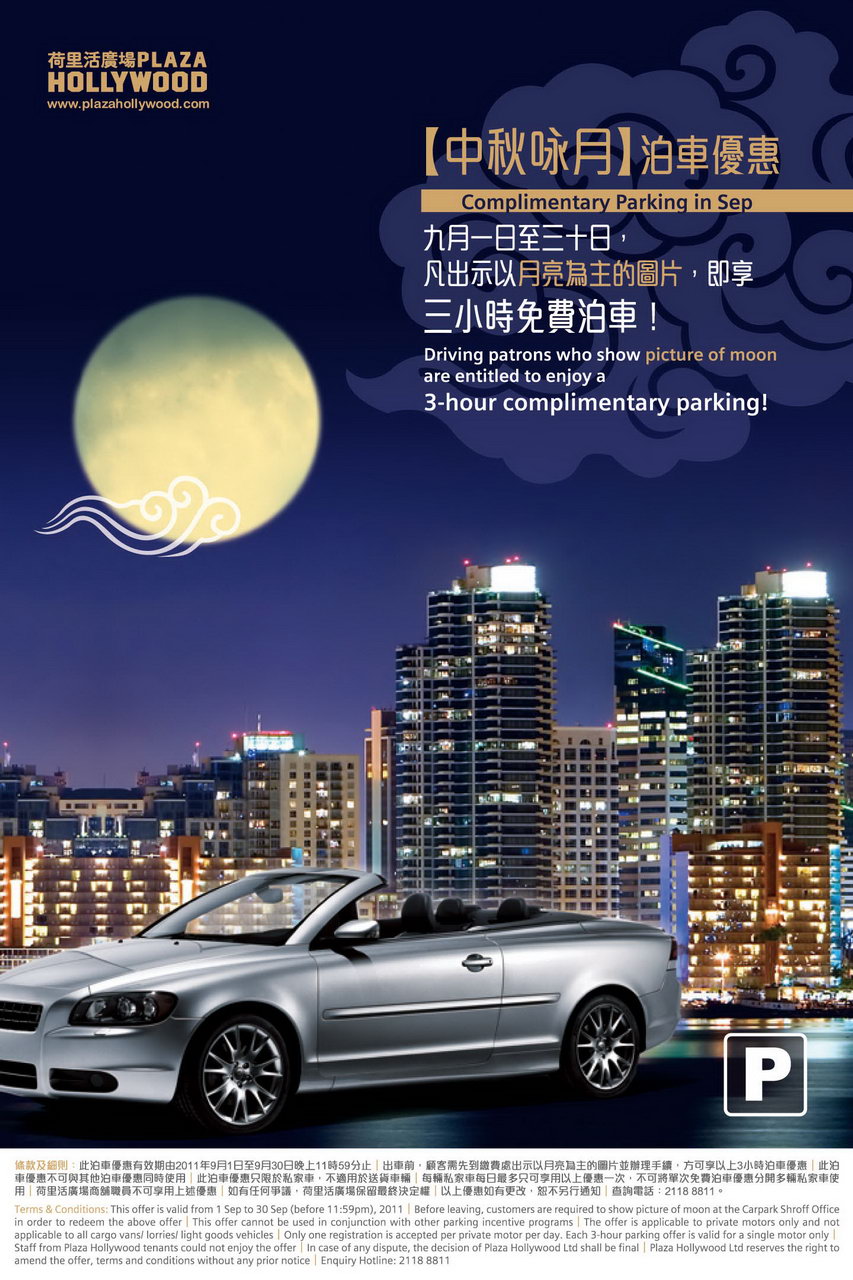 主頁新聞中心 荷里活廣場「中秋咏月」泊車優惠 02/09/2011 FacebookWhatsAppLinkedinLINETwitterEmailCopy URL打印 中秋佳節,荷里活動推出「中秋咏月」泊車優惠,只要在 9 月 1 日至 30 日,凡出示月亮為主的圖片,即享三小時免費泊車! 查詢:2118 8811 Tag本地新聞汽車資訊泊車優惠 分享 FacebookWhatsAppLinkedinLINETwitterEmailCopy URL打印 前一篇文章荃灣廣場全新消費泊車優惠下一篇文章Honda Fit 10 周年 13G 紀念版現已推出 相關內容 跑足 30 萬公里仲精神過你?保時捷獨家揭秘「長壽電池」黑科技 McLaren 750S Project Chromology 用 24K 金與樹脂層疊定義「流動藝術」 平治重新定義造車哲學!深度剖析 Mercedes-Benz Tomorrow XX 計劃 Tesla Model Y Long Range AWD 越來越親民 72 勝的傳奇終章!Honda 正式告別 Red Bull 王朝 F1 引擎格局全面洗牌 日產自動駕駛 2027 迎來「大腦」進化!聯手英國 Wayve 注入 AI 靈魂 最新內容 外地新聞 跑足 30 萬公里仲精神過你?保時捷獨家揭秘「長壽電池」黑科技 外地新聞 McLaren 750S Project Chromology 用 24K 金與樹脂層疊定義「流動藝術」 外地新聞 平治重新定義造車哲學!深度剖析 Mercedes-Benz Tomorrow XX 計劃 裝載更多