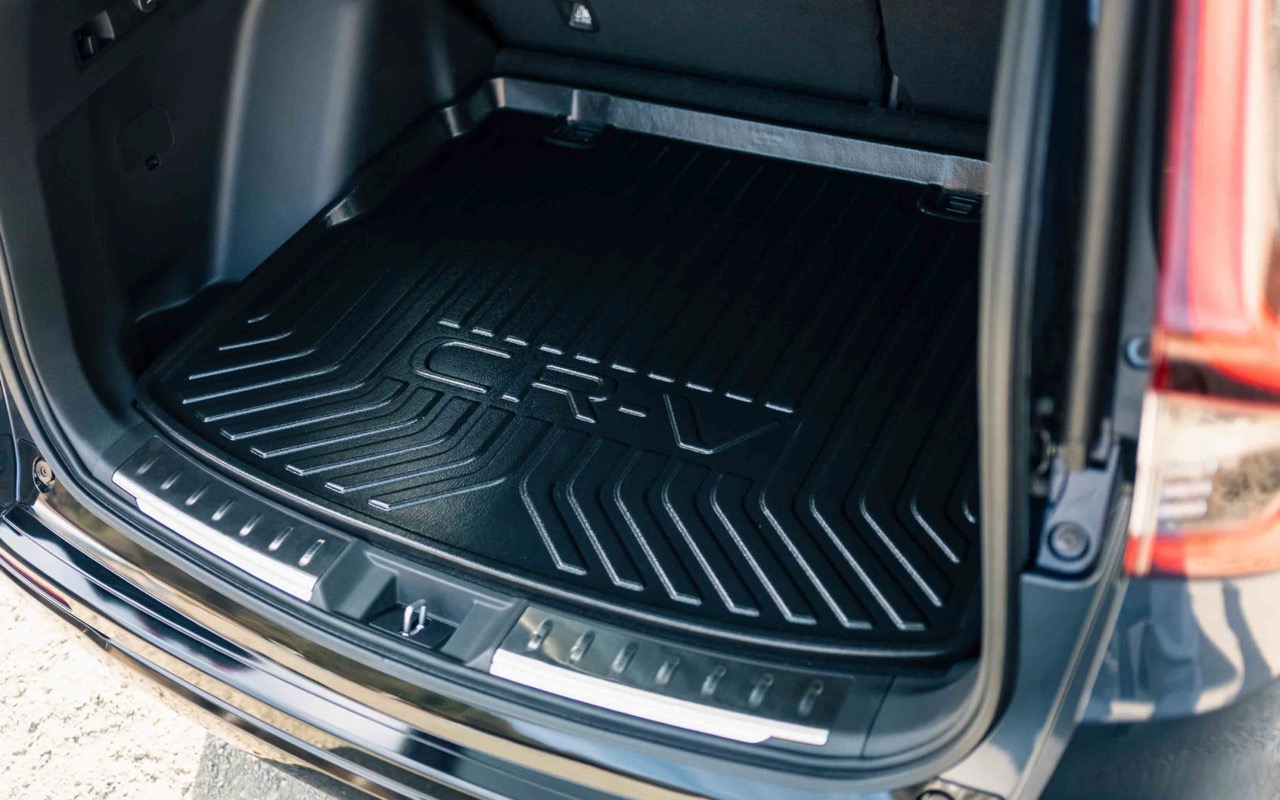 車廂內部的升級同樣精彩,重點在於提升車主的歸屬感與生活便利性。進入座車前,地面的投影燈會映照出 CR-V 標誌,儀式感十足;車門開啟時,帶有發光效果的不鏽鋼門檻踏板亦會隨之點亮。為了照顧戶外愛好者的需求,行李箱位置加入了發光後面板保護飾板,不僅在夜間提供照明,更具備防刮功能。配合高邊緣設計的防水行李箱盤,無論是雨傘還是濕透的運動裝備,都能安心放置,展現出廠方對實用主義的堅持。