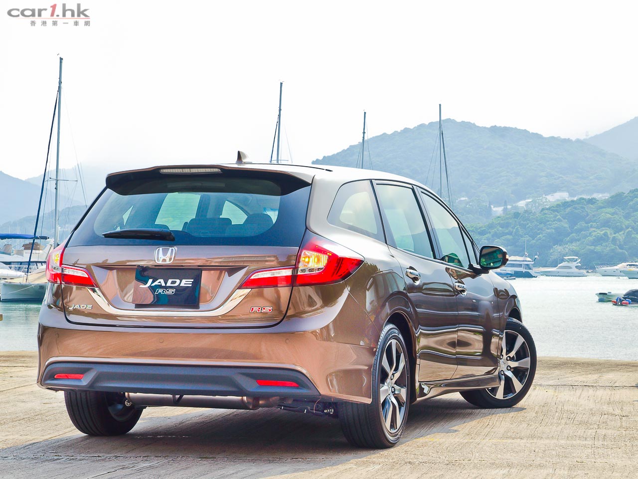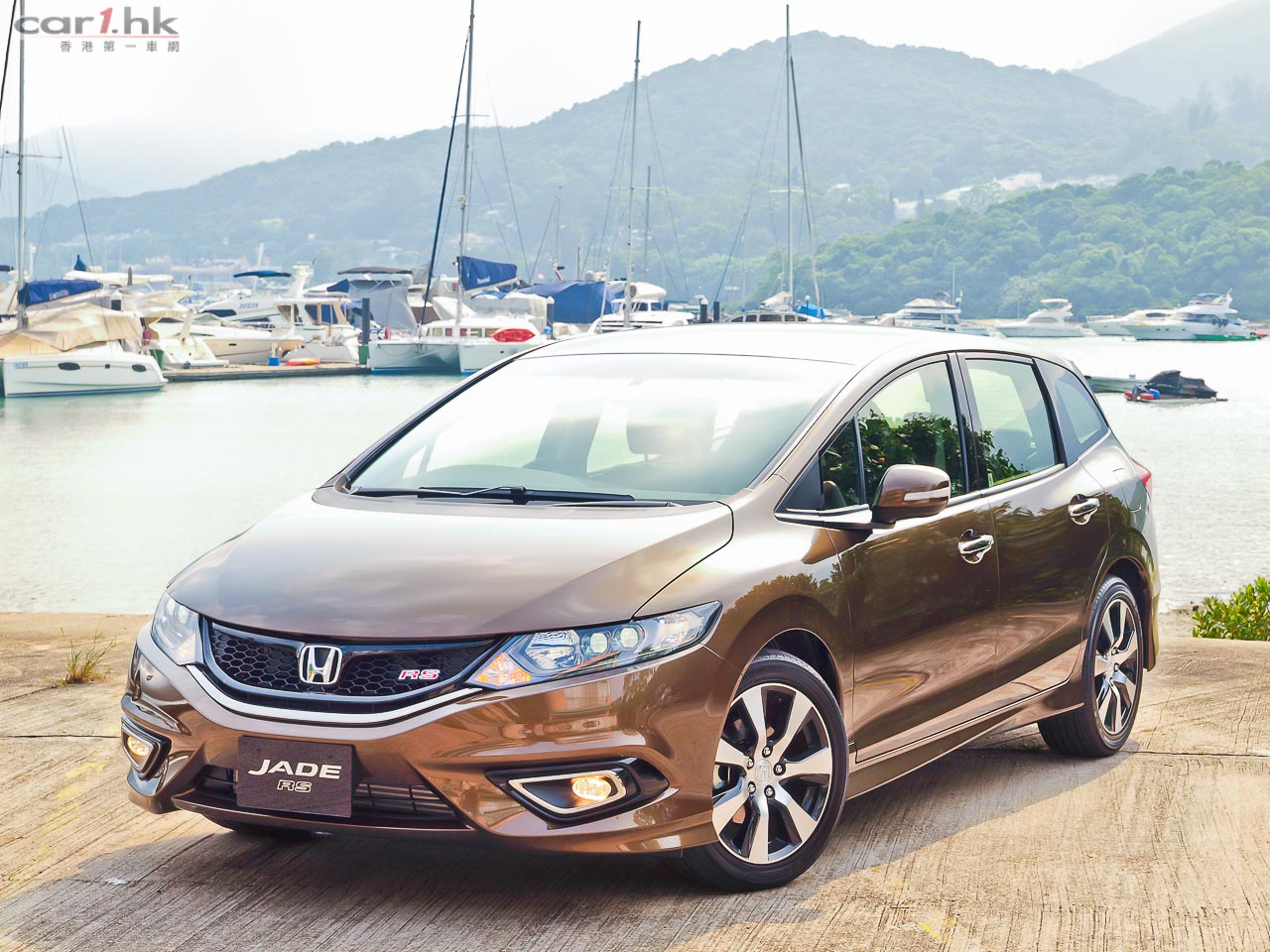 全新的Jade車系今年2月在日本推出,先有131ps的Hybrid型號,香港代理賣的,是期後在5月推出的RS版本,車價$266,880。車子有標準wagon式的外形,類似Honda由新Jazz開始使用的「Solid Wing Face」飛翼形鬼面罩,尾燈設計同樣有Jazz的影子。RS版比普通Jade不同的,外形上有六角形網面鬼面罩、前後「RS」logos、前霧燈包圍/門手柄/尾門採用暗色電鍍邊、17吋輪圈;車廂裡,有RS用的白色跳字速度/藍色轉數儀錶顯示、電鍍腳踏、銹紅線的黑色皮座和軚盤。