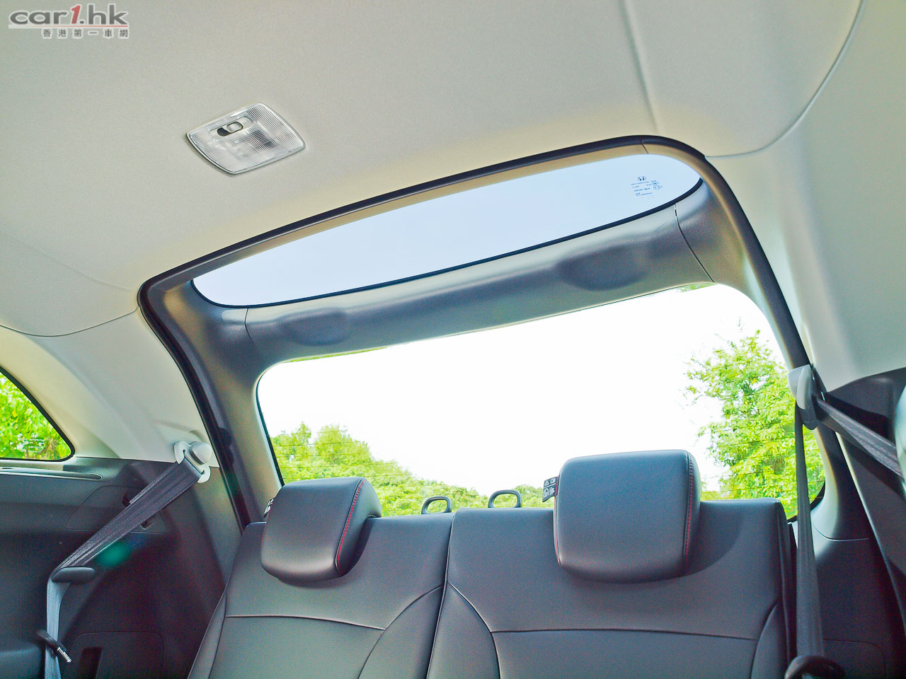 Jade也是一樣,中排座椅不但特別闊落,內側更有像所說的盒形客車「大班椅」般棟起的板間設計,感覺確比3人板櫈豪華。車子的中排路軌也有特別,是「V」形趟動的所謂「V-slide captain seats」,向前推時,兩椅向外分開,向後推時,兩椅拍在一起。接觸過Honda歷代多人車的,都不會懷疑本田車廂的友善易用程度,Jade當然沒有例外,要將中座趟前或摺起,看著清楚易明的手抽照做便是了,將座椅反一反,推一推,便可進出後排。Jade採用薄身的排氣系統和油缸來增加車廂空間,後輪的雙搖臂懸掛是慳位設計,上搖臂的弧度設計得避免侵入車箱,讓後排地台保持平坦;作為中小形wagon的Jade,後排空間當然不夠較大的Odyssey寬闊,但其實乘坐環境不錯,如中排推至最前時,後方腿位一點也不差。可獨立攤平變為行李箱的後排座椅,不似Stepwgn和Odyssey般內置有彈簧可自動收摺起來,而是要全人手推低、拉起、摺疊,但同樣是輕巧易用,用過一次便明。給後方四位乘客的照顧,見有由中橋輸出的冷氣出風口,牆邊手枕,門邊雜物格,後排旁附有杯架,尾門頭頂處有小小的天窗一塊,還有是全車四頁門窗都是全自動升降的。