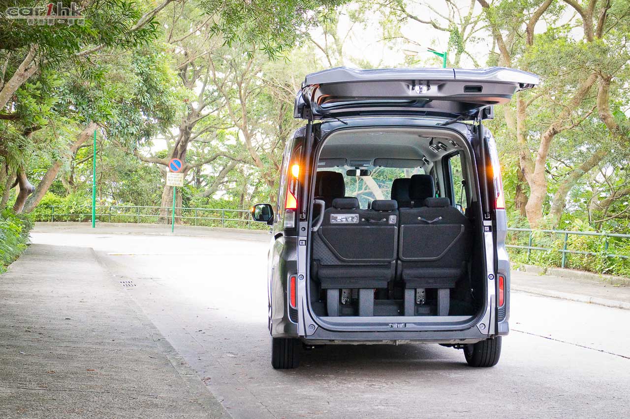 MPV 多功能車基於其實際使用需要,車型都已經被定型為「四四方方」「大大架」,要怎樣才能引起四周車主的注意?今次全新一代 Honda Stepwgn 首創雙開式尾門設計,我們可以將這個大大的尾門向上全打開,或打橫半打開。如此創意的尾門,在日本初發布時已經引來全球關注,可以想到一個突出成功的設計,可以帶來很大的宣傳效果。在實際使用時,尾車因為結構不同而重量提升,不過在雙重支撐(油壓、彈簧)協助下,向上打開尾門依然感覺安穩。尾門設計還申請了多項專利,相信短時間內不會有其他品牌模仿得到這個設計,相信這個雙開設計將成為 Stepwgn 特色之一。