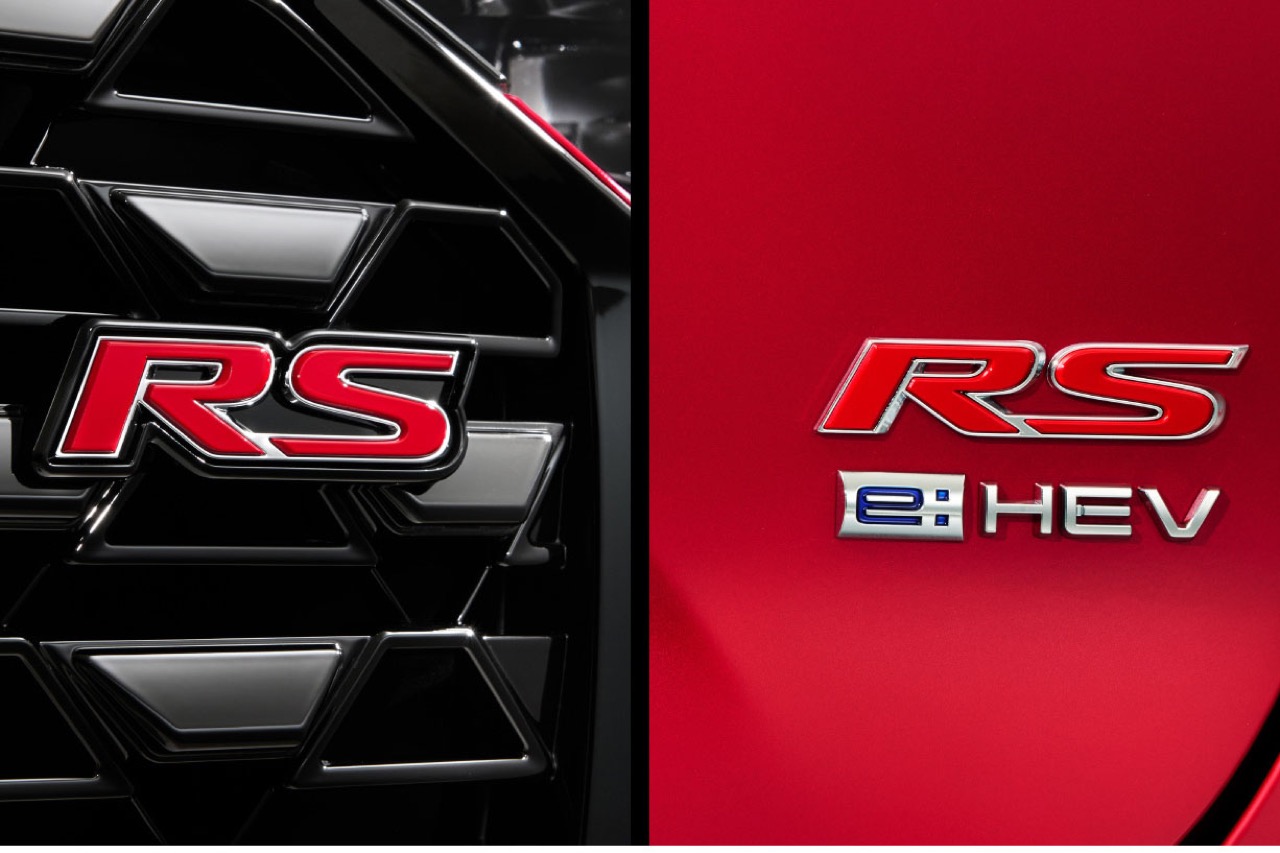 外觀換上 RS 專屬黑化套件,包括深色鍍鉻飾條、專屬前後保桿飾件、18 吋雙色鋁合金輪圈與黑色門鏡,加上 RS 專屬徽章,整體視覺效果比一般 e:HEV 車型更具侵略感。