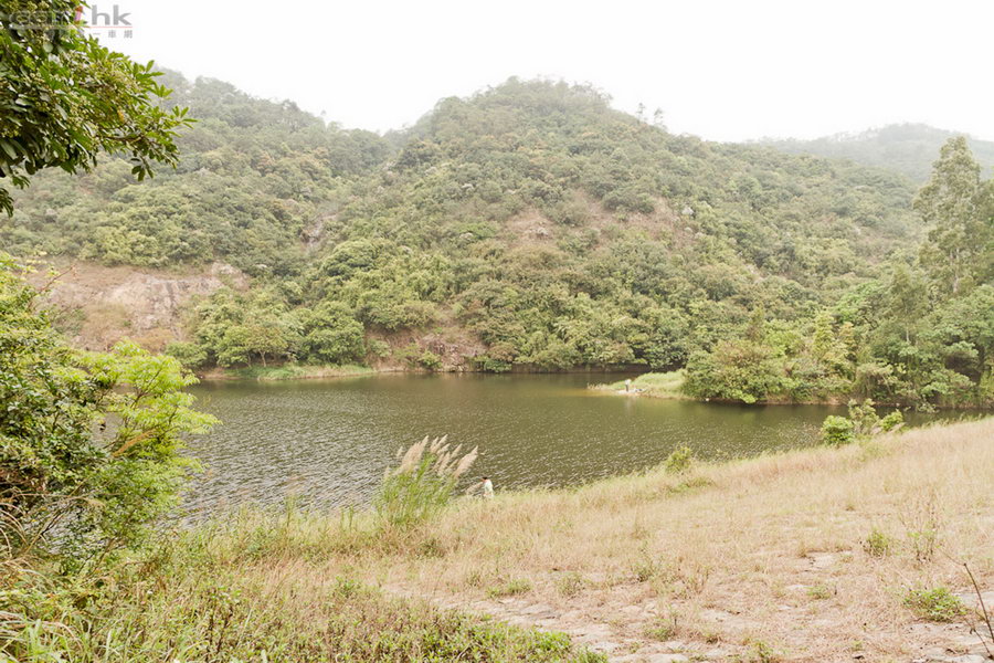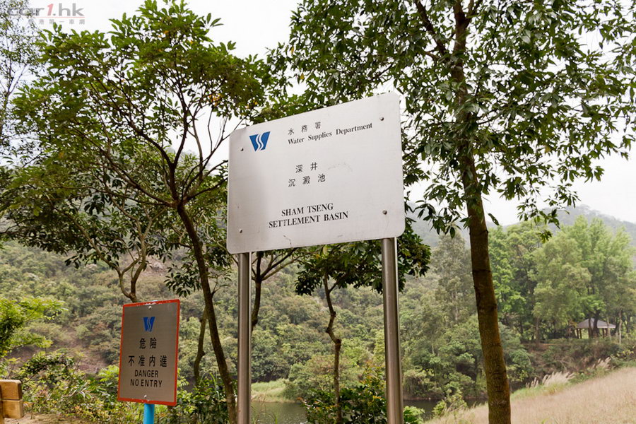 回程的時候,走到第一個交匯處時左轉繼續上斜,便會引領到今次介紹的第二個景點,便是深井沉澱池。深井沉澱池的作用是把跟山水一齊流下來的泥沙及枯枝沉澱,再經輸水隧道送往大欖涌水塘,從而起了淨化食水之作用。沉澱池兩旁由中間的堤壩連接一起,雖然沒有劃有正式停車場,但兩邊都有足夠地方可供泊車,每邊大約可以停泊六至七輛車。這裡風景比較開揚,四周都是綠油油一片,附近亦設有涼亭和燒烤設施。