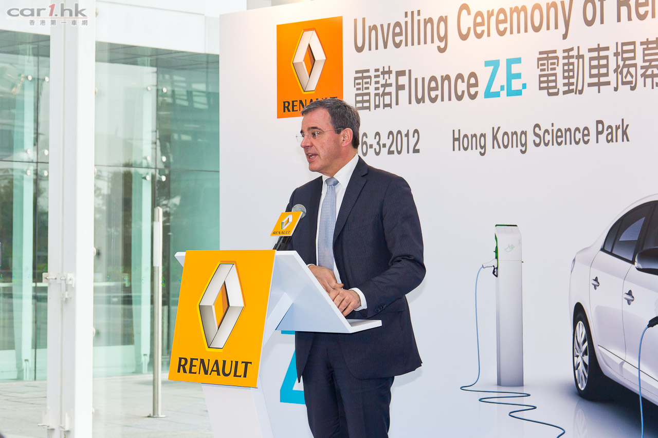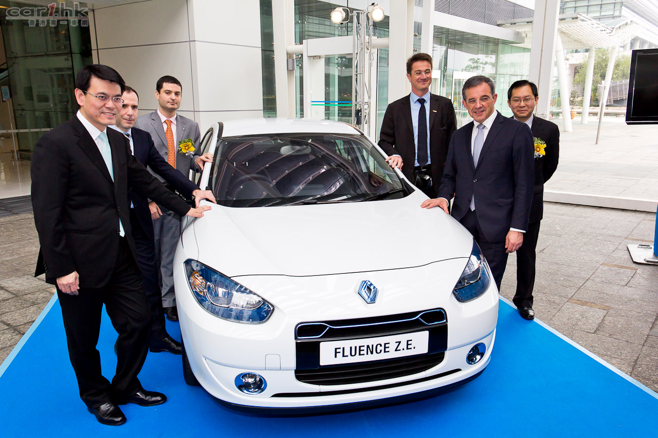 雷諾四門電動房車 Fluence Z.E. 早在 2009 年法蘭克福車展便亮相,在 2010 年正式推出量產版本,並率先於歐洲市場推出,當時香港仍然未知何時才引入。現時,2012 年 3 月 16 日 Fluence Z.E. 終於正式抵港,並於科學園舉行發布會,出席嘉賓有遠道而來的法國交通部長 Thierry Mariani、法國駐香港及澳門總領事栢雅諾、施耐德電氣集團總裁首席執行官趙國華,以及香港特區政府環境局局長邸騰華,為新車進行揭幕儀式。邸騰華局長表示,政府己經訂購了 30 部 Fluence Z.E.,預計在第三季開始交予各部門使用。