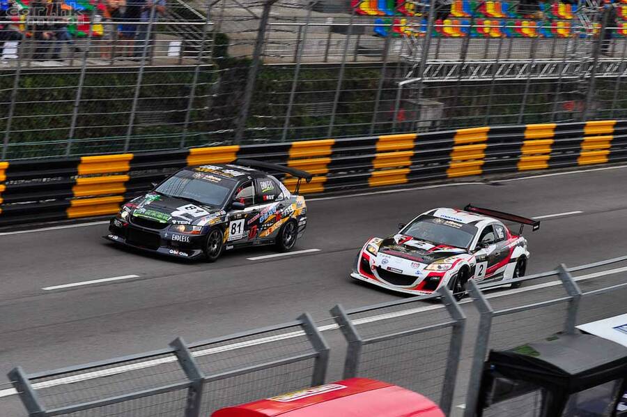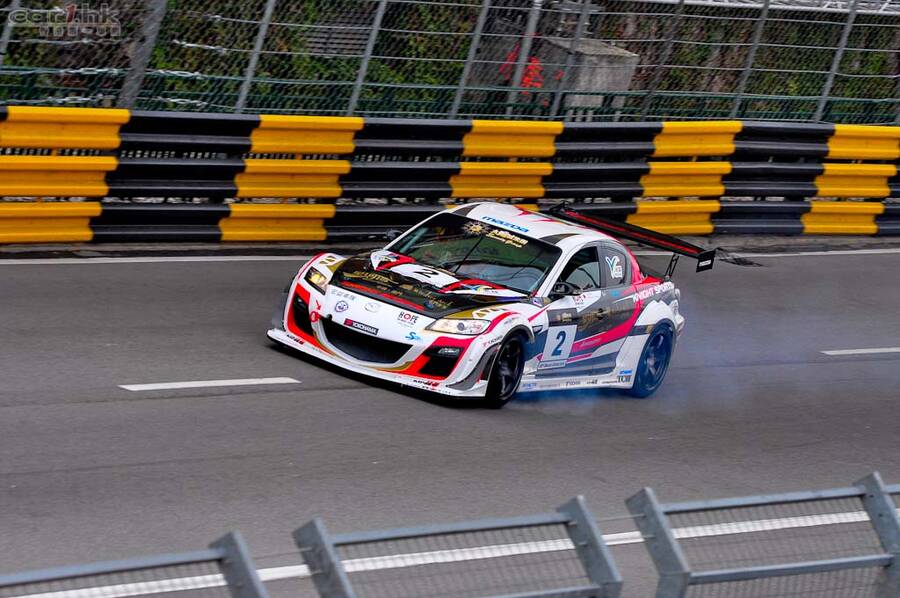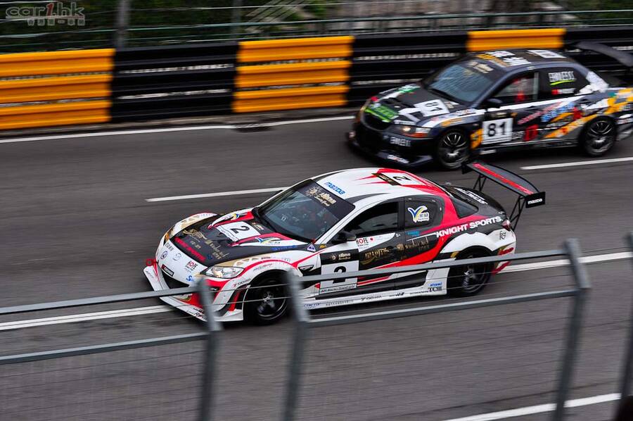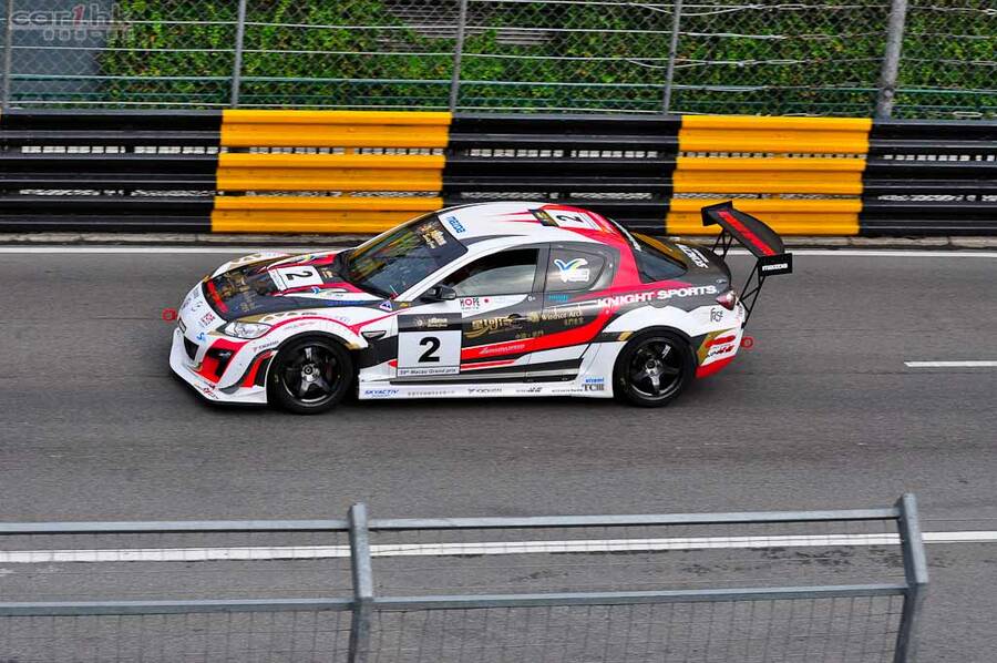 Eugenio續說:「直到 2009 年 Knight Sports 派出由谷川達也駕駛 RX-8 參加路車賽,雙方攜手合作,首次出戰便成功取得亞冠。2010 年則因意外而未能完成賽事。其實宏益一直希望可以有本地車手參與其中,與 RX-8 的谷川達也一同出戰,所以上年就親自投資了一輛 RX-7 出戰,並由土生土長的澳門車手謝榮鍵駕駛,結果取得第二名和第四名。」
