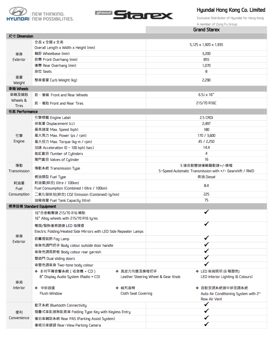 現代汽車香港有限公司正式將韓國人氣 MPV Grand Starex 8 座柴油私家車引入香港,車款各方面提升乘客體驗的元素,配以仁孚提供的專業售後服務,並以超乎想像的價錢$349,000 發售,勢於本港 MPV 市場掀起熱潮,為家庭及商務客戶帶來更多可能性。車款現可訂購,首批預計於 7 月交付顧客,而有見政府對柴油私家車管制逐步規限,Grand Starex 之預計銷售期只至本年底,而首批車輛可免費升級至皮革座位,有興趣的顧客欲購從速!