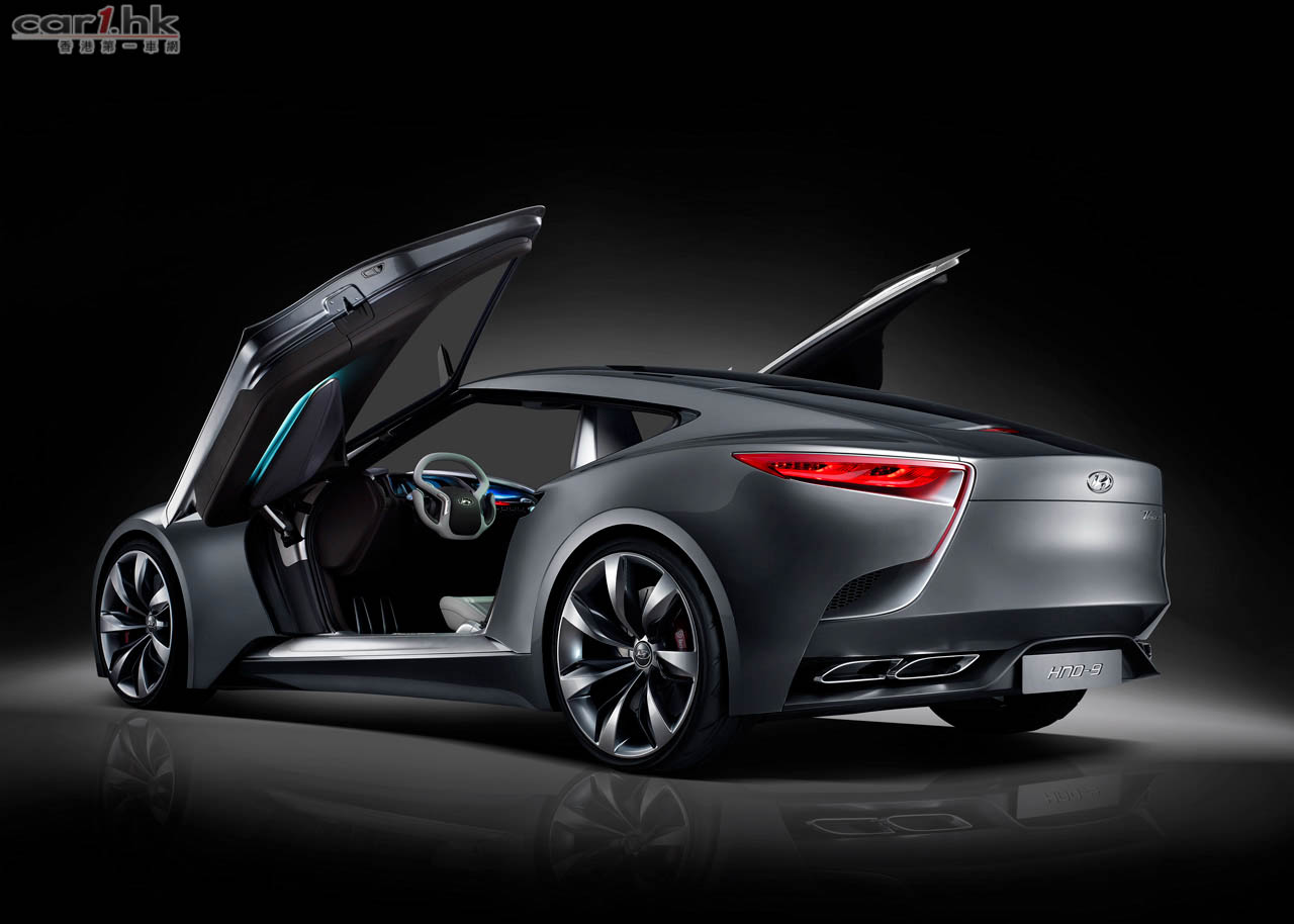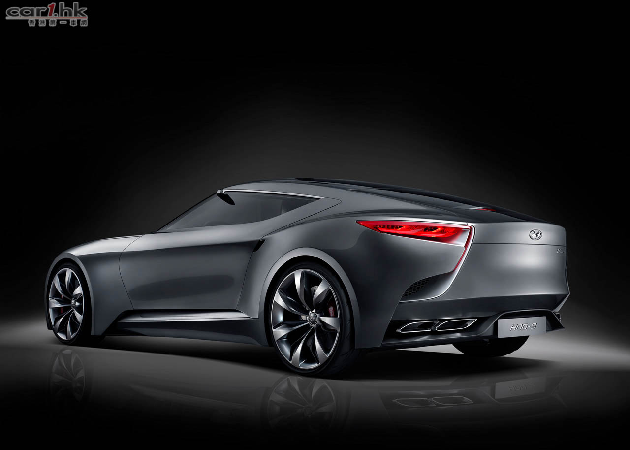 Hyundai 推出最新概念車 HND-9 Concept。HND-9 Concept 的動感雙門 Coupe 外型是為新一代 Genesis Coupe 的雛形,代表著「Fluidic Sculpture 流體雕塑設計語言」設計理念的再進化,HND-9 Concept 將會採以前置驅的傳動系統,車身尺碼為長 4,695mm x 寬 1,890mm x 高 1,340mm,軸距為 2,860cm。車頭大型的 6 角形鬼面罩,拉高的引擎線條、細長的頭燈組及上掀式歐翼車門,設計理念十分現代化。車尾則以箭矢型燈組、4 出尾喉及 22 吋合金鋁圈為搶鏡。至於車廂佈區則繼續是概念車一貫的高科技作風。動力系統方面搭載 3.3 升渦 GDi 輪增壓引擎,配合 8 速波箱,可輸出最大馬力 370 匹及 535 牛頓米扭力。