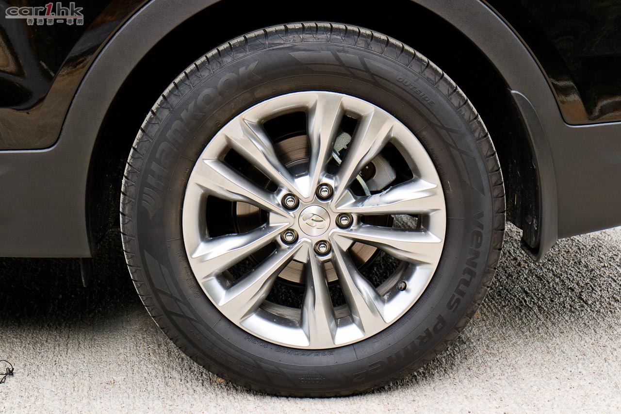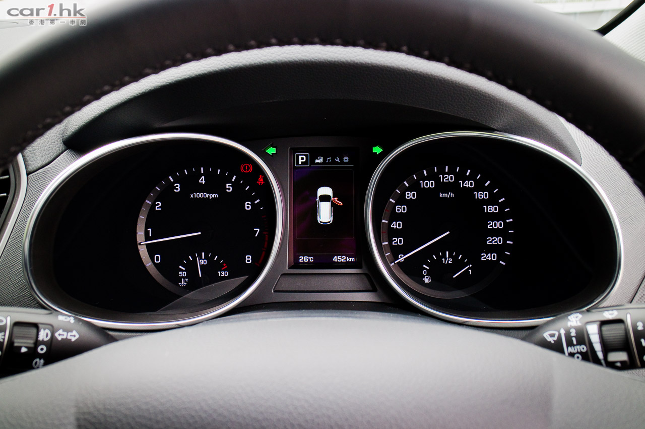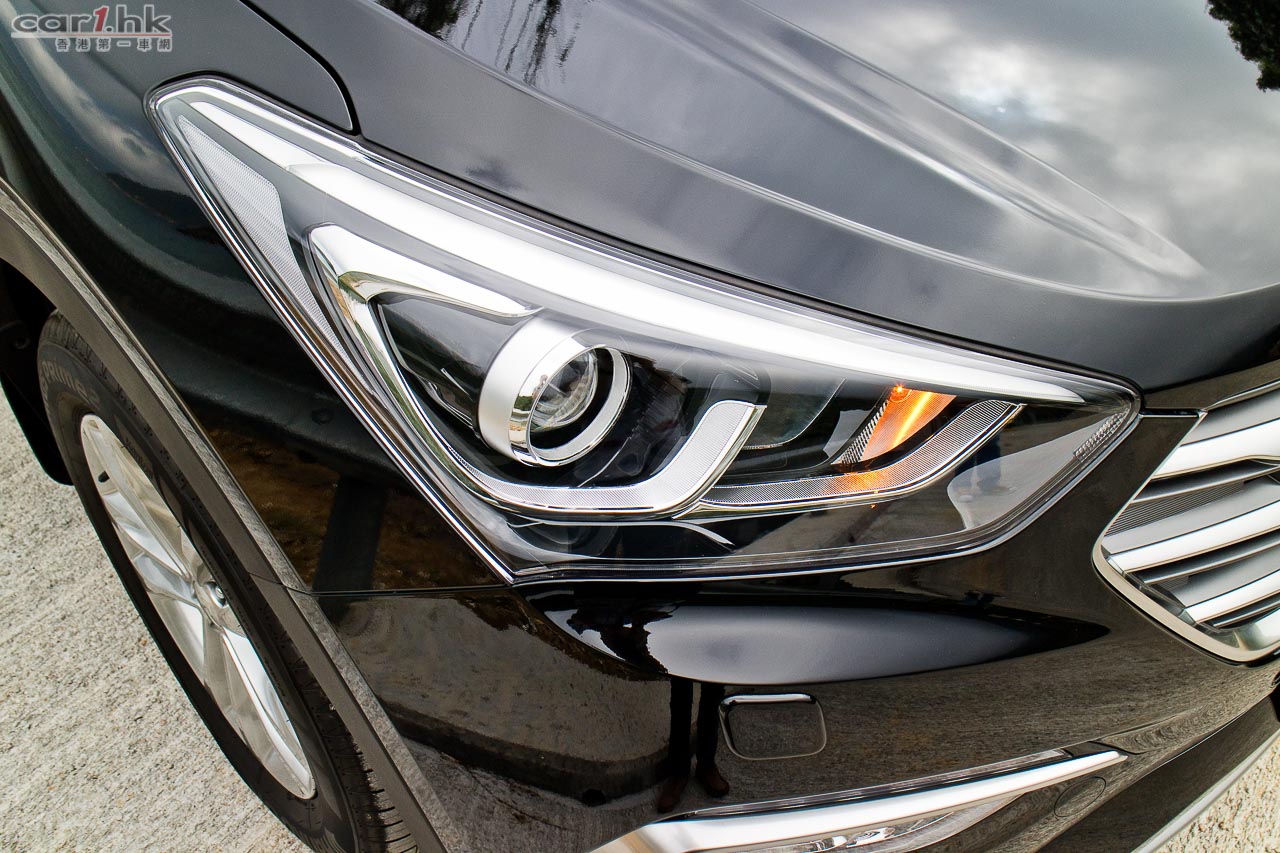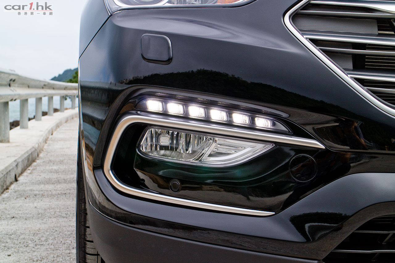 好多人會說 Santa Fe 不是已經試了很多遍嗎?雖然這部車的動力心臟一樣,不過在小改款後觀感令人大為討好,為了滿足部份韓國車車迷讀者,我們再次近距離接觸一下它。今次小改款身型不變,外觀最多變,係新倒梯形大型銀色鬼面罩,再配上設計富層次感的車頭燈和 LED 日間行車燈,整體外觀感覺即時時尚了很多。霧燈位的 C 型銀框,有助凸出整個車頭下方部份。試駕車泵把中央下方加了銀色保護板,令這部車添加一點越野味道。尾燈和輪圈的設計都是新的,不過就未及車頭部份搶鏡。論外型、線條、設計和外觀配置,小改款 Santa Fe 的確吸引了很多。