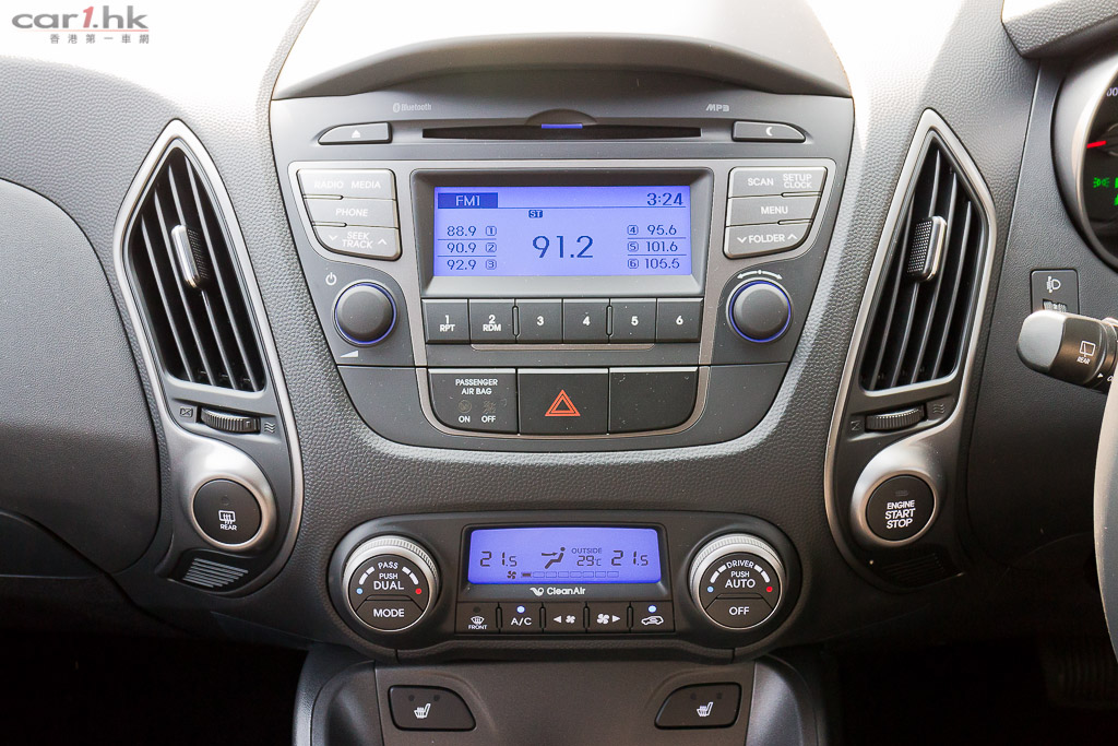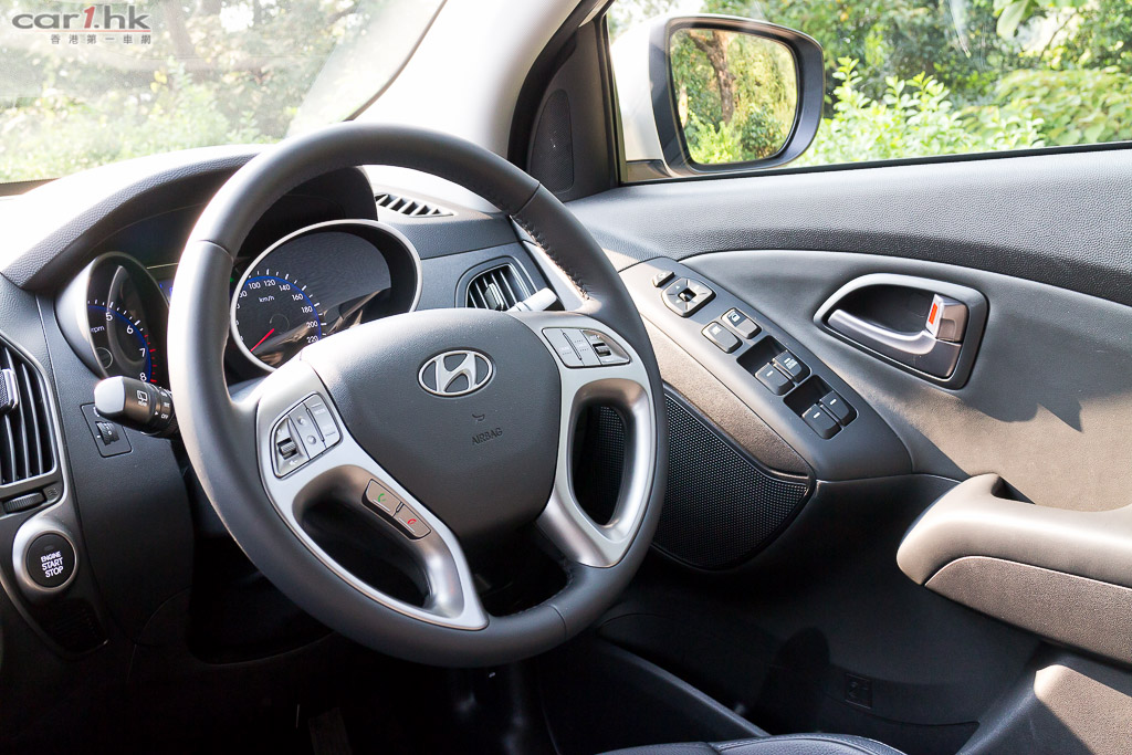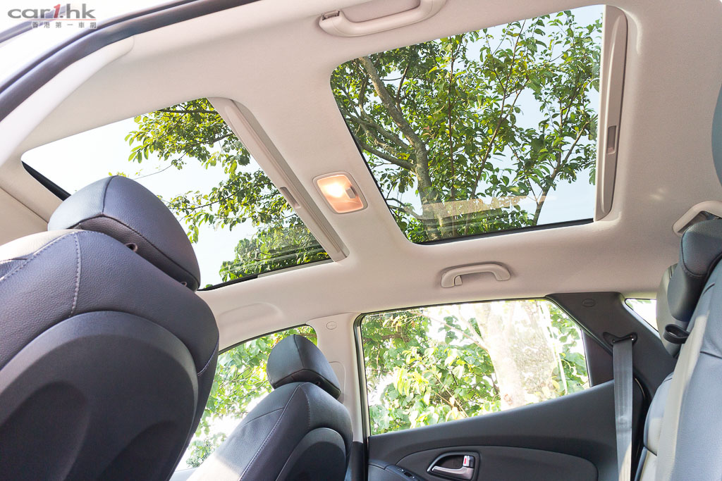 2013 版的 Tucson 其實交由德國法蘭克福設計中心研發,它以流體雕塑 Fluidic Sculpture 設計概念打造,令到這架車擺脫過往韓國車老土形象。這架富時尚感、前衛的 Tucson,車燈設計銳利外,還有電鍍提升車燈輪廓,就算遠望都非常搶眼。Tucson 車廂配置也相當齊全,絕對不是單靠賣相。坐在駕駛艙後,會感受到它設計都算花過心思,駕駛席也有一點 Cyber 科幻感,銀雙圈錶板、銀色多功能軚盤都很搶眼。皮座椅、電動調校功能也有齊,設備實在不弱。中控台音響雖然簡單,但是也有 CD、Aux-In、USB iPod 輸入,簡單易用。擺位公整,令到你很難對它挑剔,而這款車已備有無匙系統,這一刻令到筆者忘記了身在一架韓國 SUV 之內。雙天窗設計亦為 Tucson 加分,令到前後座都感到遼闊開揚。不講不知,這部車的冷氣備有自動除霧、離子清新器功能,有助提升車廂內的空氣質素。