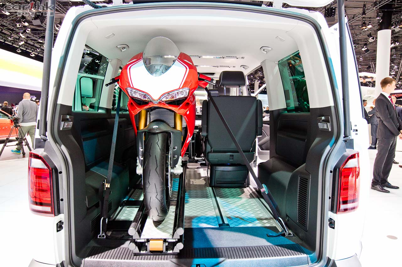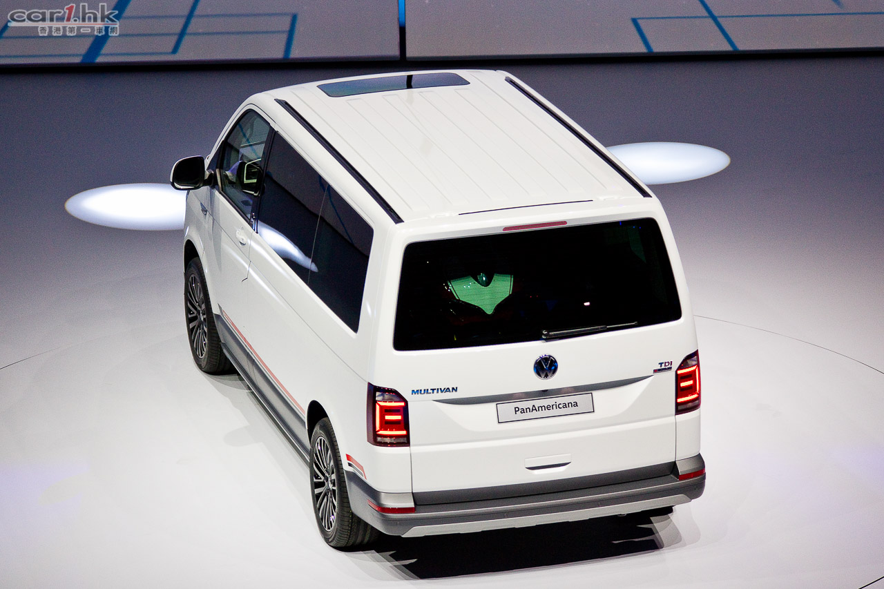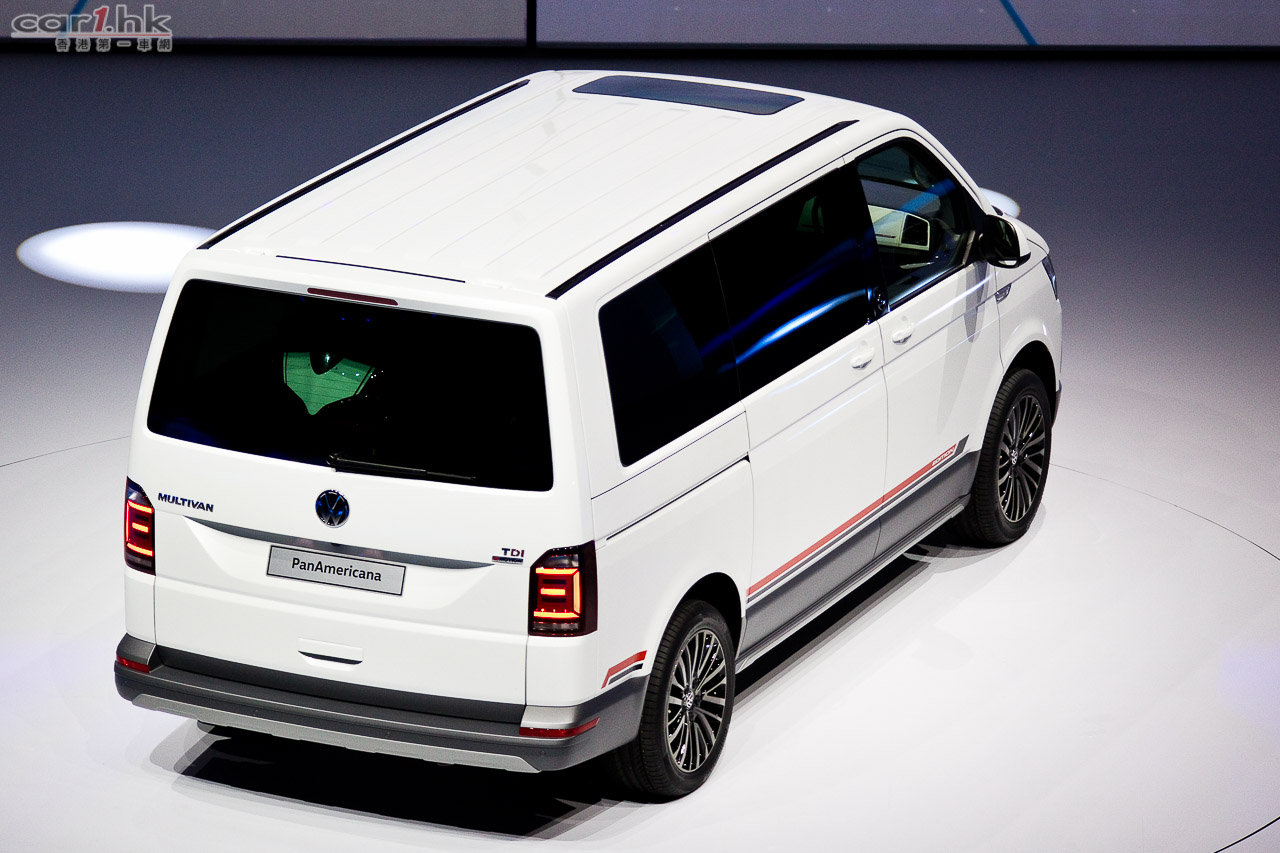 今年法蘭克福車展中,Volkswagen 展示了一部頗年輕化的商用車 – PanAmerican 輕型客貨車。車身由白、紅、灰塗裝,全新的頭燈設計和跑車款的輪圈,令這部車有睇頭。這部車其實以現有 T6 變身而來,車尾載貨位置加入了電單車架,令這部車可以運載電單車之用,同時中排就變成單座位設計。這部車使用新的 2.0 Turbo 柴油引擎,最大馬力 240 匹和 400 牛頓米扭力。使用七速 DSG 波箱傳動,同時備有 4MOTION 四驅行車系統。駕駛艙亦是年輕化為主,三幅式平底軚盤、皮座椅、白色駕駛艙飾件,在一般商用車也是比較小見。