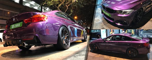 然後來說說專業焗油,效果最佳的上色必須在專業的無塵焗油房中進行,而且上色後以高溫燈照射才可以保證漆油穩固而且色彩持久亮麗。此外,由於事前部分組件需要拆除,加上上色前的準備工序,因此一般需時5-10天。如果是高質素的專業焗油房,完成後效果是貼膜難以媲美的,細心及有口碑的焗油房更會將內格及引擎艙都一併轉色,感覺完成度較高,而且若漆油出現石仔痕或淺刮痕等輕微損傷,受損部分也不易擴散,會較易於修復。