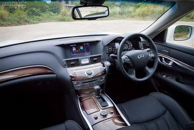 豪華混能「型」態Infiniti M35h 與頂級車型 M37S 相若,車身充滿肌肉線修,包圍採用簡單款式,並配備 18 吋合金輪圈,兩側頭沙板有 Hybrid 徽章,令 M35h 整體外觀充滿運動感,但相比 M37S 卻顯得斯文低調。車廂保持一貫 Infiniti 豪華風格,佈以大量高級皮革包覆,桃木裝飾有著漸變色效果,盡顯高貴格調。同時,輕觸式功能的 8 吋彩色螢幕、自動恆溫冷氣具有 Forest Air 空氣淨化功能以及聲控藍芽電話免提,皆為標準配備。此外,M35h 加設 Vehicle Sound for Pedestrians(VSP)發聲裝置,在時速 30km/h 下能發出低響,以便途人知曉。 動力大油耙低動力系統方面,3.5 升 V6 引擎配合電動馬達能輸出高達 360 匹馬力,比起同級汽油引擎更勝一籌,極限車速更可達到 250km/h,從靜止加速至 100km/h 只需 5.5 秒,比 M37S 還強。M35h 採用全新的鋰離子電池,在純電模式下最高時速能夠保時在高速行駛,比起其他擁有 Hybrid 車款的品牌遙遙領先。在起步及低速時,M35h 全憑電動馬達提供動力,再配合動能回收系統,令 M35h 的油耗低至 7L/100km。至於 7 速 +/- 半自動波箱帶來強桿的駕駛表現,令人沉醉於猛烈的加速推背感,再加上出色的 52︰48 前後車重分布,攻彎相當靈敏好玩,以一在豪華混能房車來說,M37S 做到了動靜皆宜。 |
