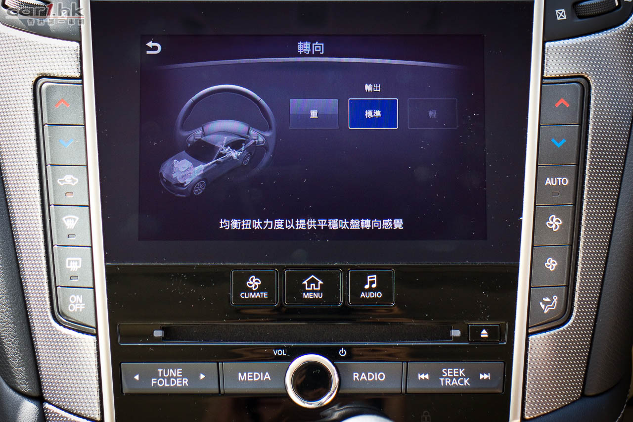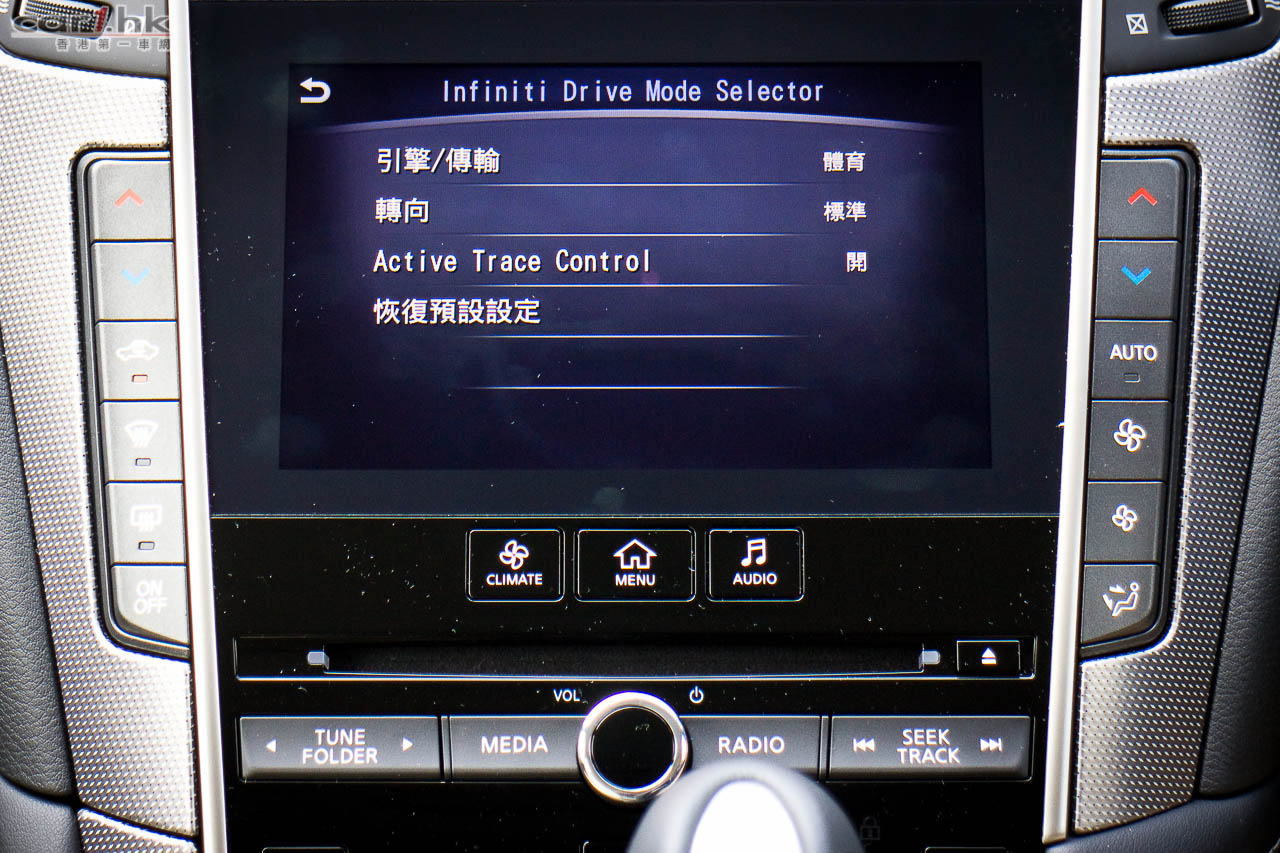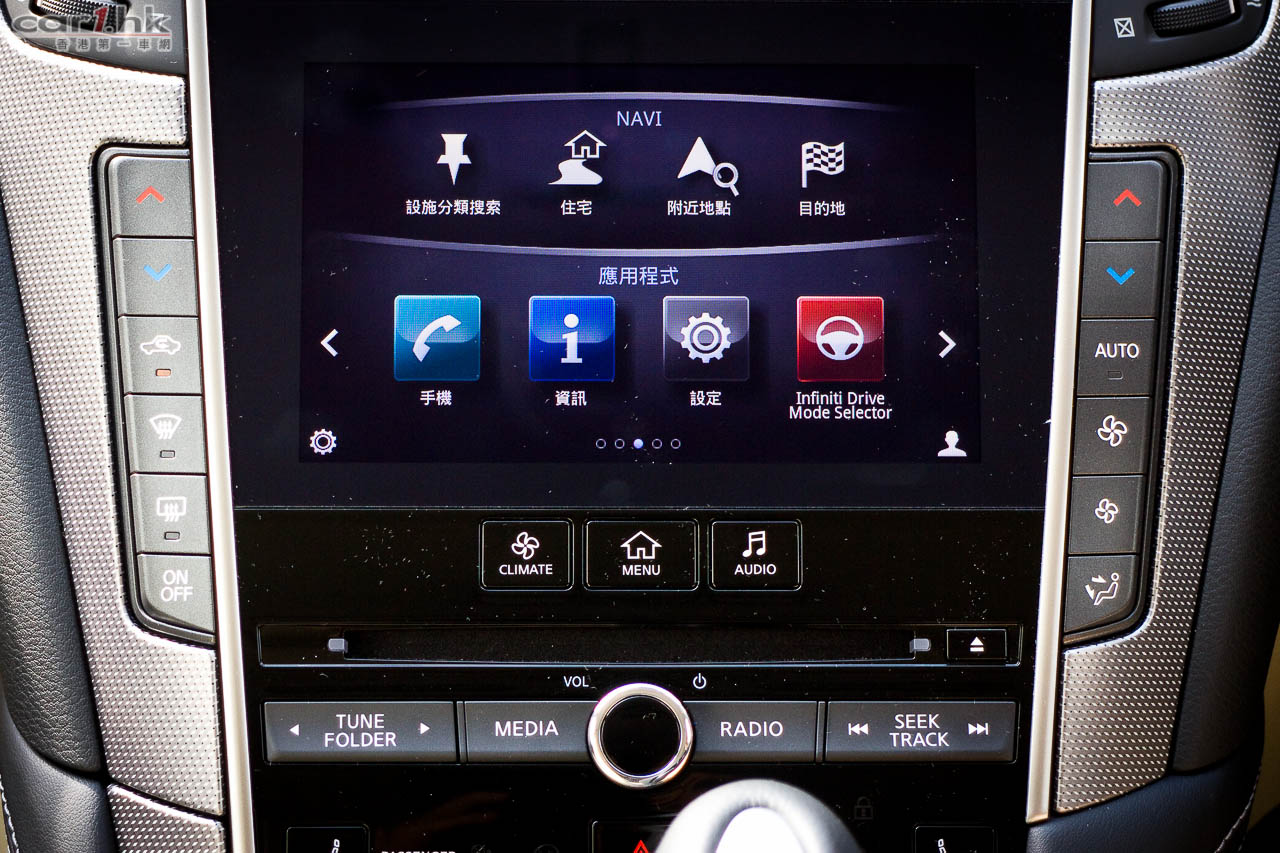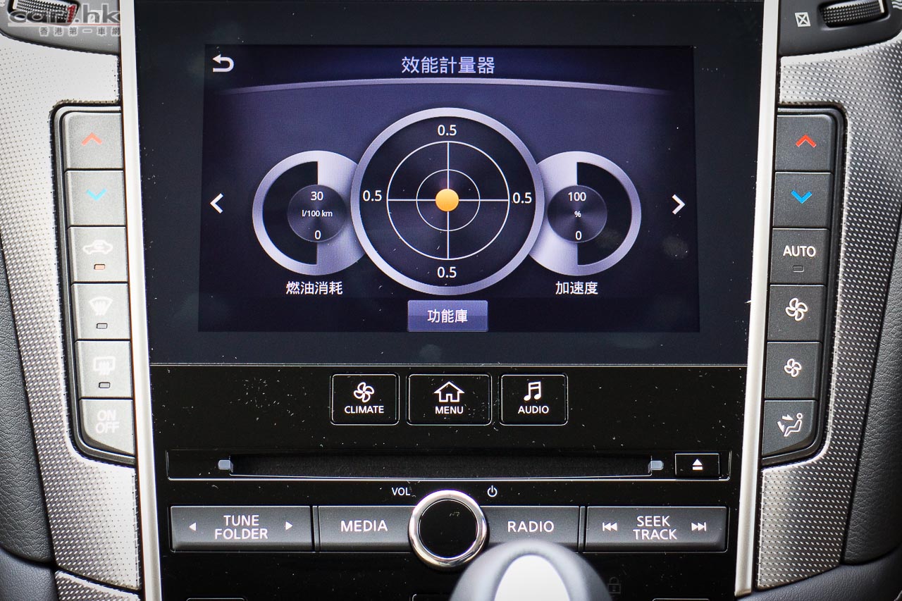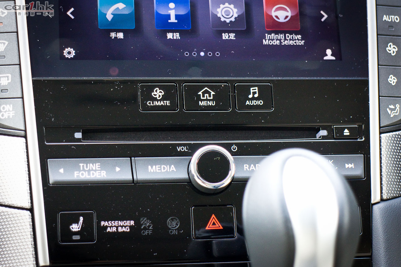 著車時,錶板指針會先旋轉,錶板中的彩色 LED 屏幕會顯示 Q50 的動畫,未開動已經給駕駛者一點動感感覺。Q50 2.0t 是與 Mercedes-Benz 平治合作,平治提供她們的 2.0 公升直四渦輪增壓引擎給 Infiniti,而這副引擎早已應用在 E250、A 250、CLA 等車型。馬力輸出達 208 匹、峰值扭力為 350 牛頓米,在 1,250-3,500 轉時可以全數釋出。波箱方面,亦是由平治提供的,使用 7 速半自動波箱,雖然反應不錯,但是未有提供軚盤轉檔撥片筆者有點遺憾,因為試駕時覺得這部車運動感很強,起步時的爆發力亦很出眾,擺脫了同級車的斯文風格。軚感回饋反應自然,亦沒有日本車常見輕飄飄的問題,快車開起來感覺實在。相信這些結果部份都歸功於 F1 車神 Sebastian Vettel 吧。大部份新設計錶板中央都有一個 LED 顯示屏,可以讓駕駛者設定不同顯示,但 Q50 偏偏沒有了行車車速,唯有靠錶板指針,感覺有點不太方便。另一方面,中控台方而找到指南針、G Force 力度計,玩樂和實用性都算照顧周到。代理表示,Q50 Hybrid 的設備更齊全,性能感覺更強,很快就可以安排試駕,大家請密切留意我們最新報導。