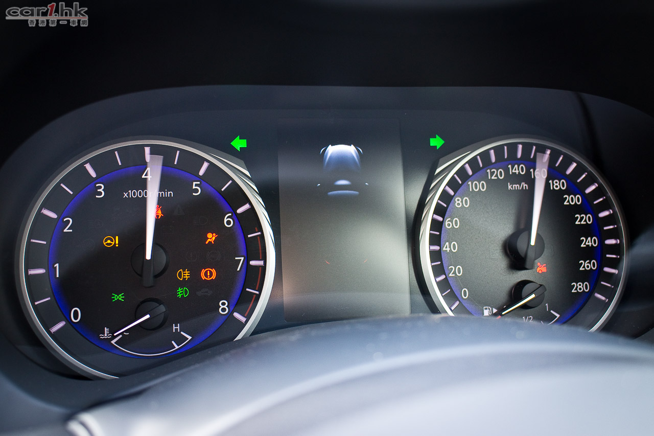日本車很愛玩的著車旋轉指針,都可以在 Q50 身上找到,錶板的 LED 顯示屏還有 Q50 動畫。