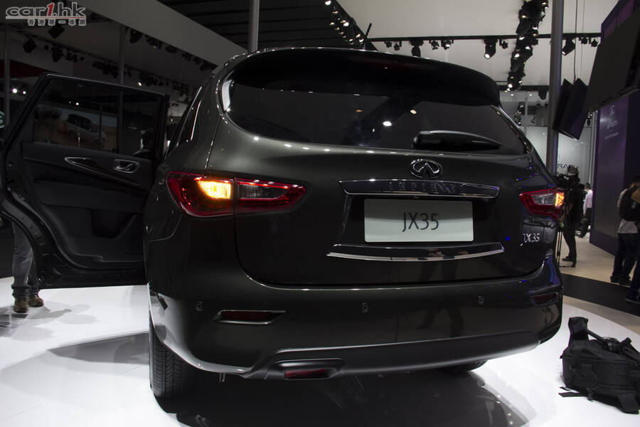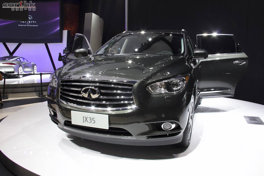 早在今年春季於美國已推出的 Infiniti JX35,截至 10 月底,創下 16,000 萬輛的銷售佳績。這次來到廣州車展分為 2WD 及於 AWD 版本,至於售價方面,前者為人民幣 $618,000,後者為人民幣 $718,000。JX 的車身尺寸為長 4,996mm、寬 1,960mm及高 1,746mm,軸距為 2,900mm。車內配有自適應巡航系統、Bose 獨立 5.1 聲道頂級音響系統、8 吋觸摸顯示屏、全景天窗、電動後遮簾、電加熱座椅以及 XM NavTraffic 實時路況信息系統。安全性方面,配有 BCI 碰撞預防系統、BSI 盲區側撞預防以及車道偏離預警等。 Infiniti JX35 搭載的經典的 3.5 升 V6 引擎,最大輸出馬力為 269 匹,峰值扭力達到 336 牛頓米。傳動系統使用 CVT 無級變速器,具備 SNOW / ECO / SPORT 等駕駛模式。