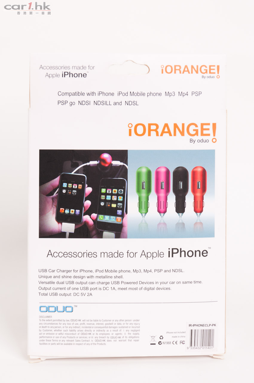 主頁Option補品 iOrange 車用 USB 充電器 19/08/2011 FacebookWhatsAppLinkedinLINETwitterEmailCopy URL打印 國內山塞版產品多不勝數,在大陸 iOrange 就是山塞 iPhone 出名,而且還一步一步地建立屬於自己品牌的周邊產品,現時在大陸的有不錯市場。今次介紹俾大家就是 iOrange 出品的車用 USB 充電器,最主要原因是此款充電器有兩個 USB 插槽,可以同時充 2 部 iPhone,加上流線型的外型和多種不同顏色選擇,具有十足的時尚味。 售價:$69 查詢:2391 0370(AES汽車配件用品) TagOption 精品Option補品汽車資訊 分享 FacebookWhatsAppLinkedinLINETwitterEmailCopy URL打印 前一篇文章Audi「綠色駕駛競賽」A4L 節油新紀錄︰4.3L/100km下一篇文章日產舉辦之「創新科技試車日」革命性電動車率先予公眾試駕 相關內容 移動音響室降臨?!Sony AFEELA 1 現身 NAMM Show 2026 藍月亮染上中國綠!BYD 和曼城達成全球戰略合作夥伴協議 鋼鐵再生與靈魂重塑:Sony-Honda AFEELA 1 挑戰造車極限 Toyota 史上最強 RAV4 現身日本!329 匹馬力配 150 公里純電續航 GR SPORT 版同步推出 續寫三十年傳奇!Honda 研發全新 2.4 升 V6 混合動力心臟誓奪 IndyCar 王座 Stellantis Heritage 三大傳奇賽車空降維琴察 Racing Meeting 最新內容 外地新聞 移動音響室降臨?!Sony AFEELA 1 現身 NAMM Show 2026 外地新聞 藍月亮染上中國綠!BYD 和曼城達成全球戰略合作夥伴協議 外地新聞 鋼鐵再生與靈魂重塑:Sony-Honda AFEELA 1 挑戰造車極限 裝載更多