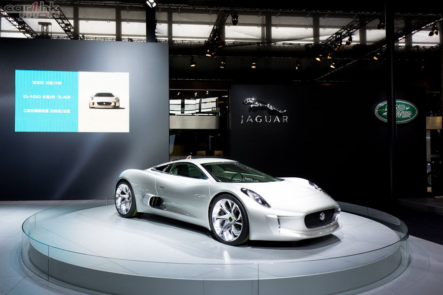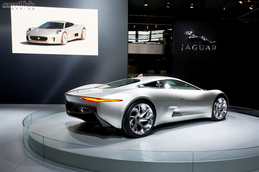 為紀念 Jaguar 品牌踏入第 75 年,廠方在今年的上海車展,特地安排旗下最新概念油電混合動力跑車 C-X75。外型流線至極的它,有別於過往出現在人們眼前的概念 Hybrid 跑車,而且它的動力系統更顛覆了電動馬達作為輔助的固有思維。因為它由一套稱為 RE-EV 引擎,即傳統 Turbo引擎(基本輸出 70kW,最多可達 140kW 為電池充電)放置在車架中後方、電池安排在車頭的系統驅動,而 4 條車輪更各自連接 1 個電動馬達驅動整部車(輸出 145kW / 295lb-ft),總共可達 580kW(780bhp)/ 1,180lb-ft 的驚人動力輸出!縱使它的波箱像火車般只有 1 個變速齒(尾牙比例 3.1︰1,屬 Turbo 車常用設計),但因為 4 個電動馬達實際上已組成四驅系統,故此它由 0-100km/h 僅需 3.4 秒的加速力,所以這部「貓車(可別忘記豹是貓科動物)」可謂十分怪異。