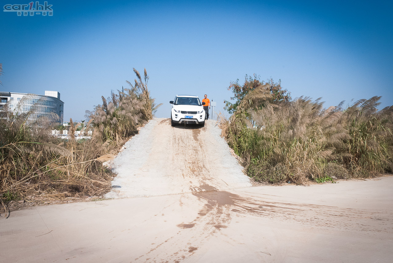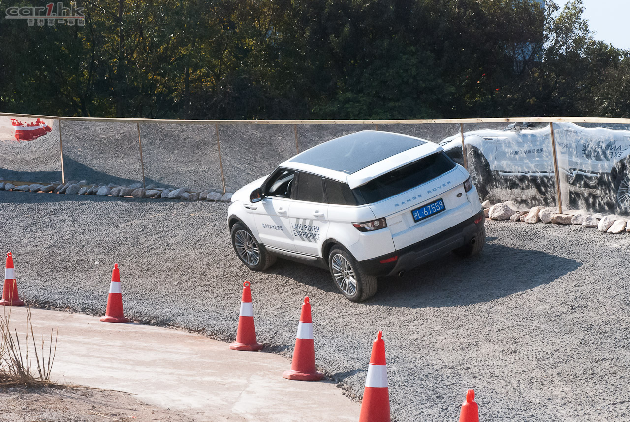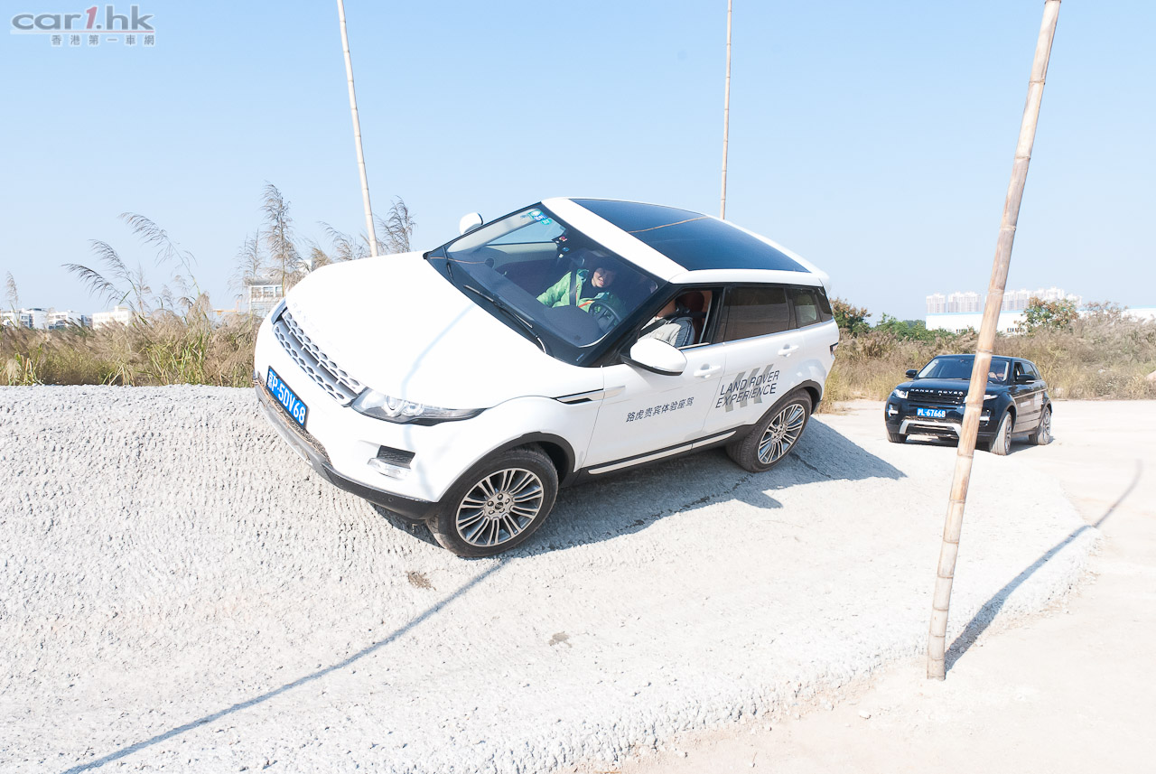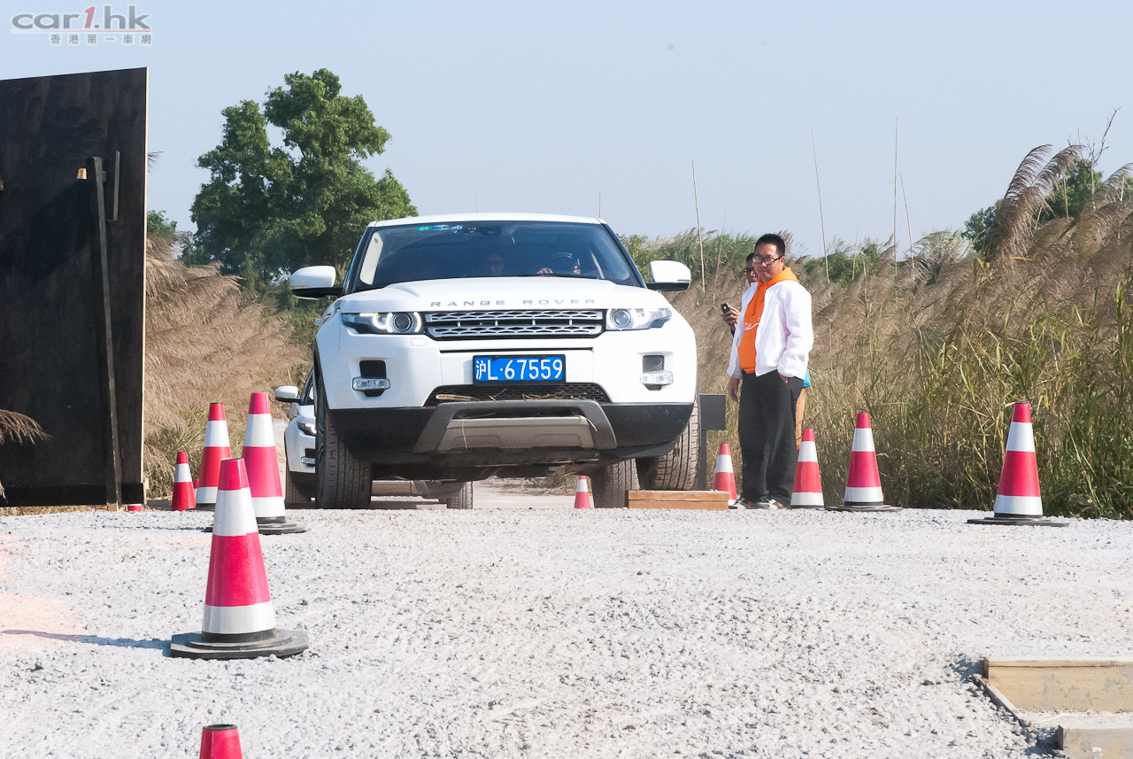 回港前的最後環節去到廠方特設 Off-Load 場地測試 Evoque 的越野能力。在不同的關卡有教練指導如何通過關卡,最主要使用的模式有三種,分別是草地/碎石地/雪地、泥地和沙地模式,在不同模式下,引擎、波箱與懸掛系統都有不同設定適應不同地形。