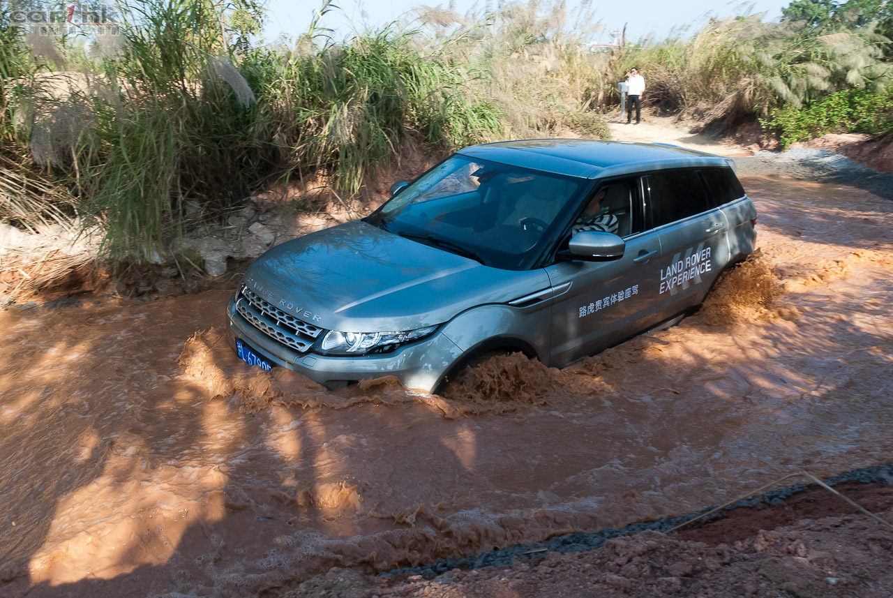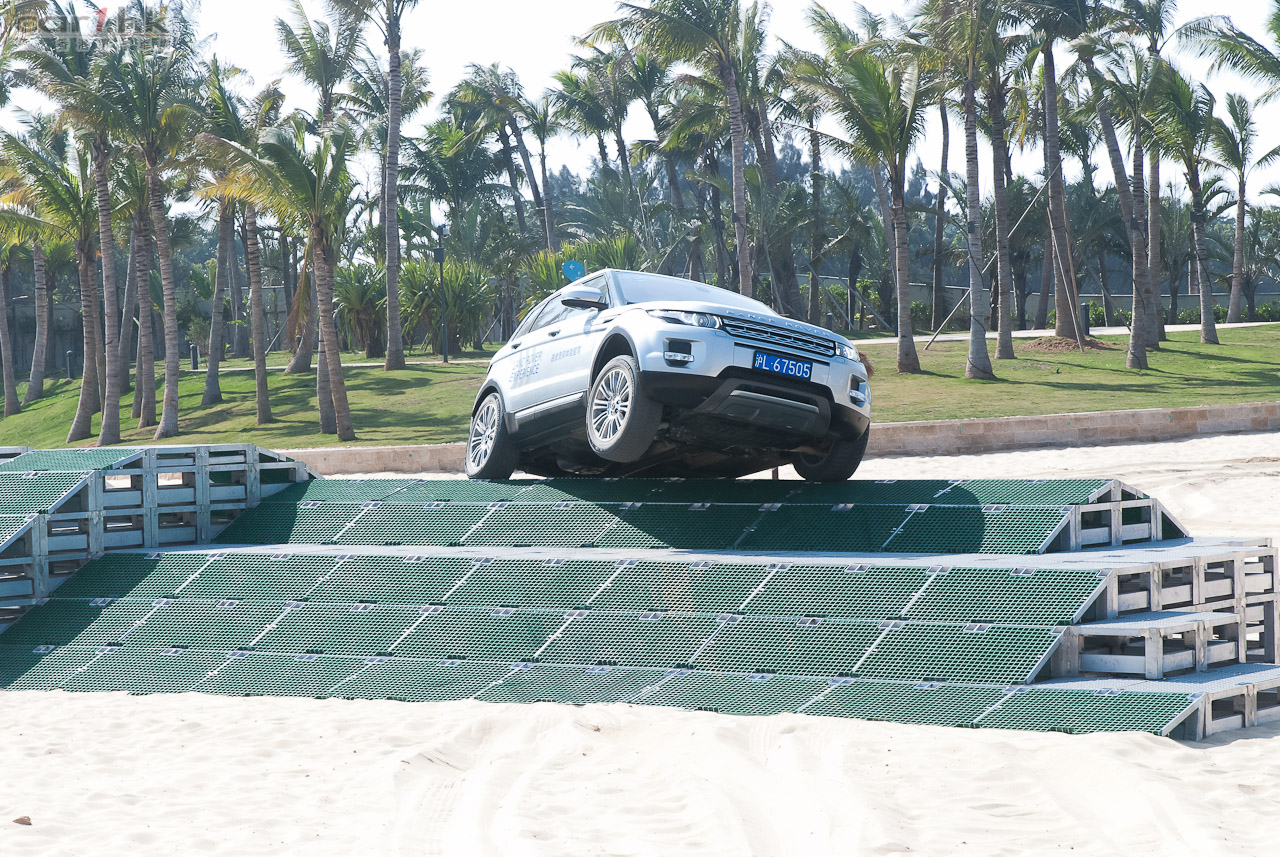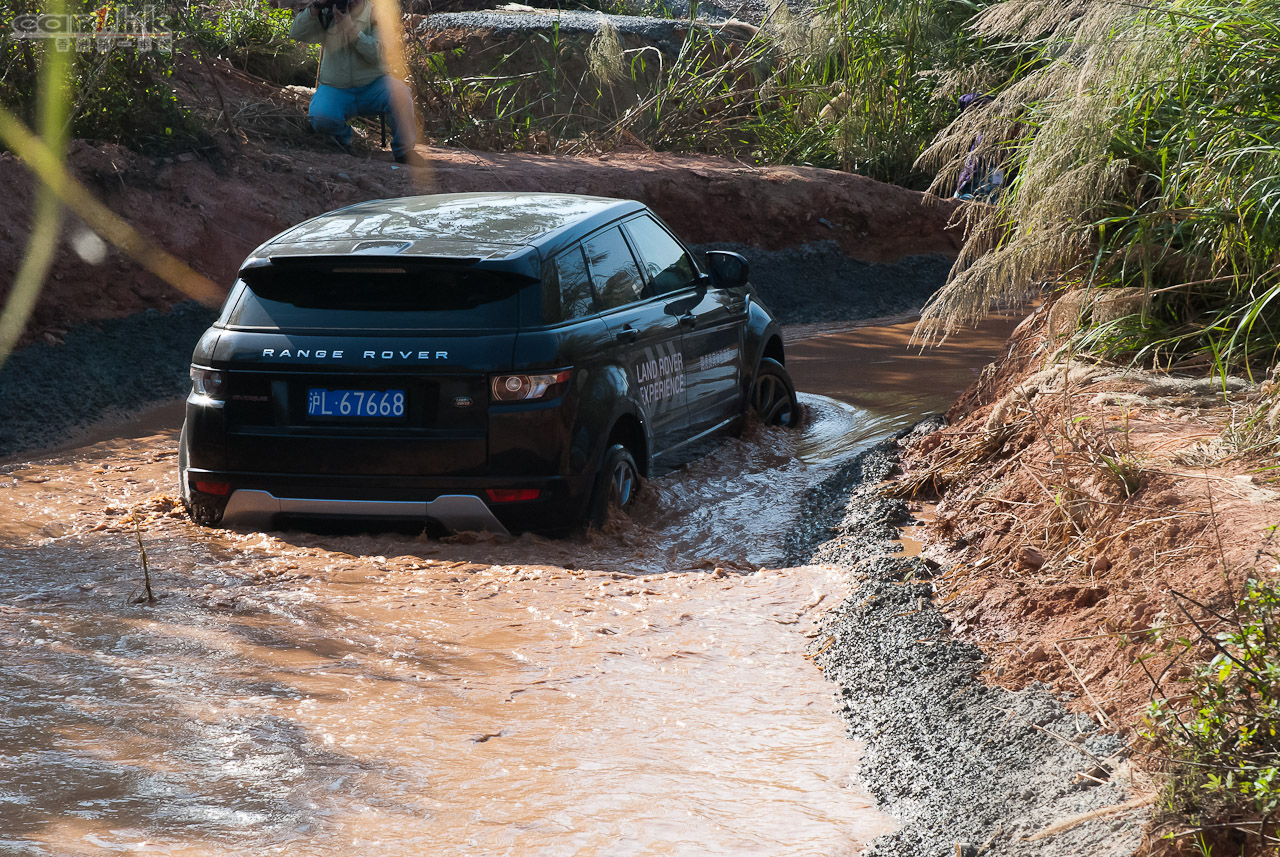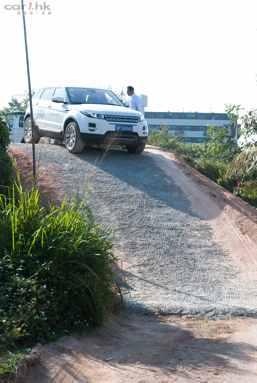 回港前的最後環節去到廠方特設 Off-Load 場地測試 Evoque 的越野能力。在不同的關卡有教練指導如何通過關卡,最主要使用的模式有三種,分別是草地/碎石地/雪地、泥地和沙地模式,在不同模式下,引擎、波箱與懸掛系統都有不同設定適應不同地形。