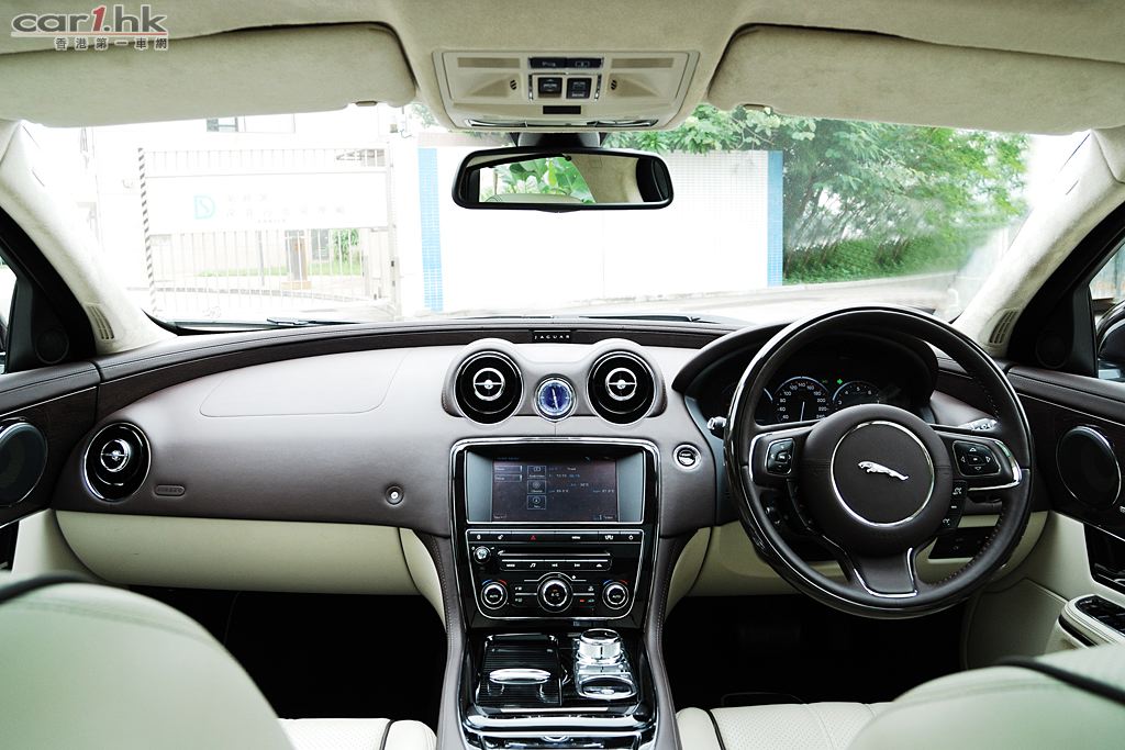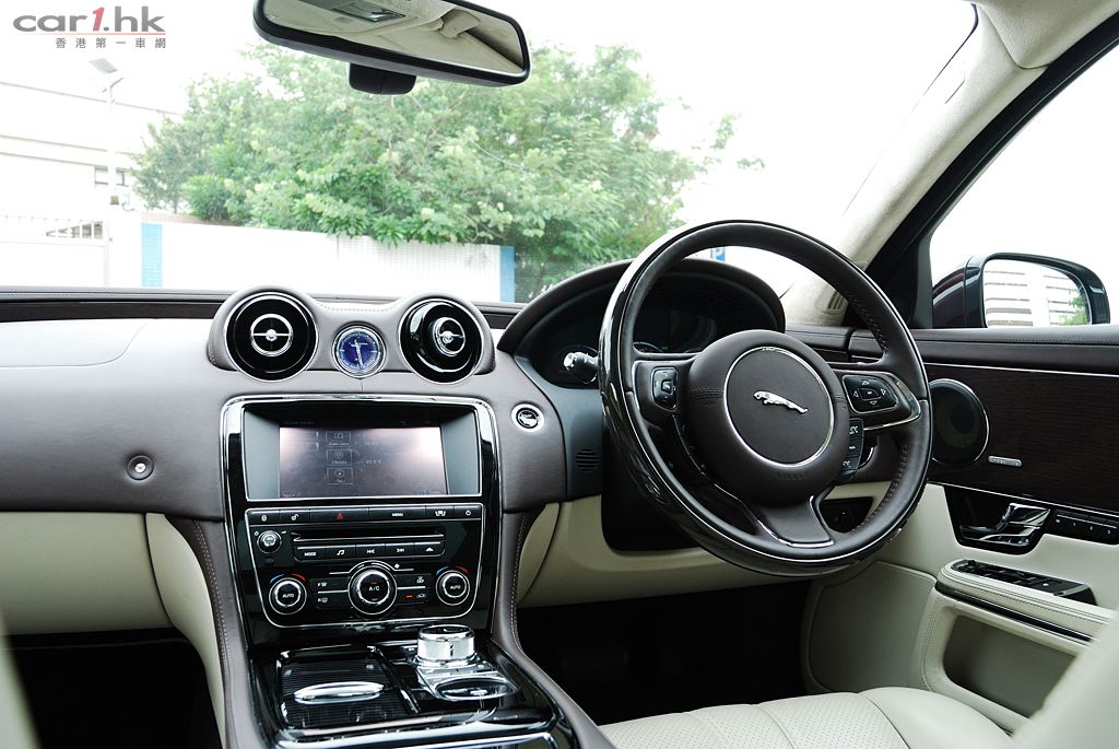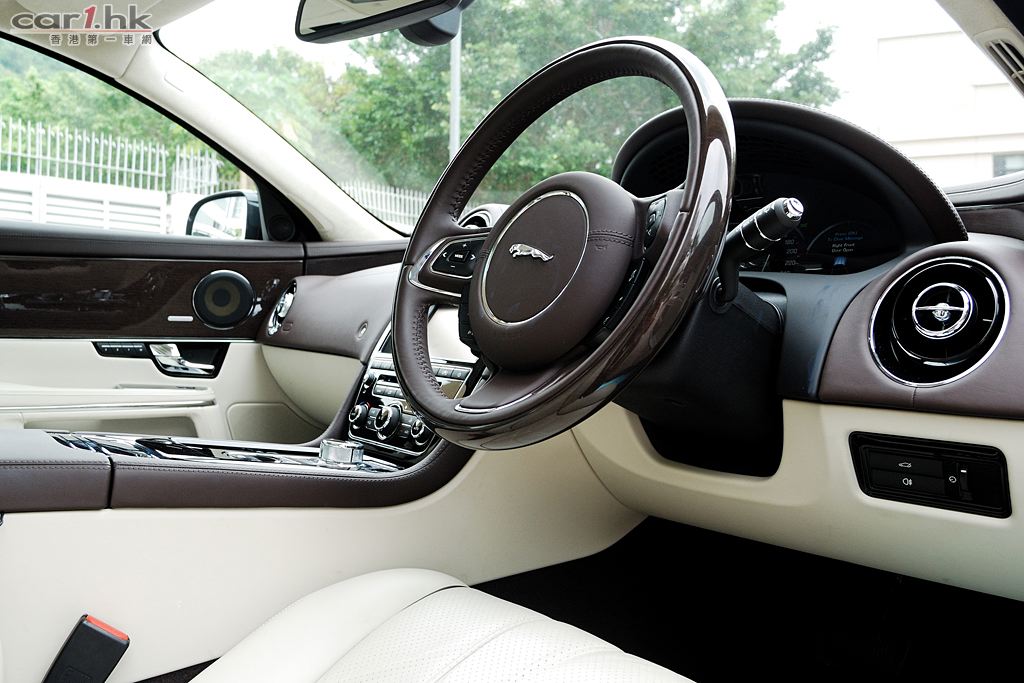 推出過戰鬥機的 Jaguar,以戰鬥機引擎噴氣口形態,應用在新一代車系的冷氣出風口上,包括今次主角 XJ,確實讓人有點熱騰騰。車廂內應用大量藍色冷光作照明,當然是想令夜車行車時更有格調,亦由於車廂內的冷氣出風口、轉檔轉盤等都是銀色電鍍包裹,這些藍光照到這些部位時,更能突顯出與同級對手不同之處,又高科技又科幻。車廂內用料買家可自由打作,是 Jaguar XJ 吸引車主之一個重點,車廠提供了多達 126 種配襯,包括真皮、裝飾面版。務求讓乘客更易感受到 Jaguar 造車如何用心,車廂內的兩側裝飾木紋面版,其木紋都是同一塊而且是對稱的,用完美、精益求精來形容是最好不過。座椅使用 Soft-Grain 真皮皮革,同時雙針縫製,如此挑剔的手工藝,實在令人目不暇給。