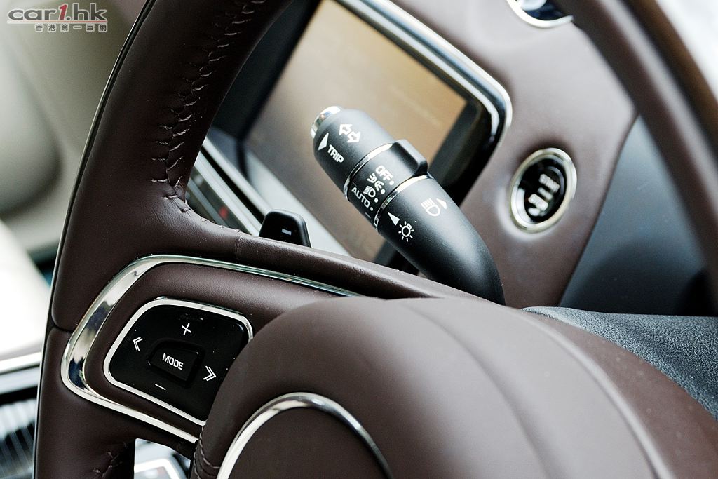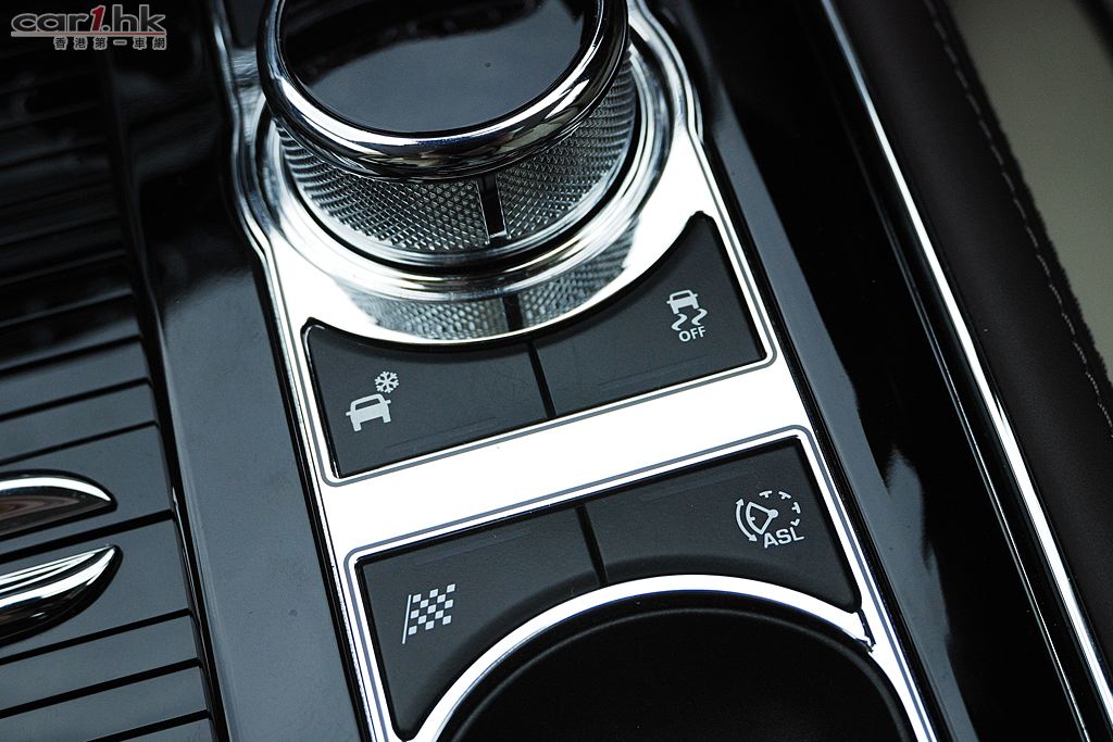 應用了第三代 AJ-V8 引擎的 XJ Portfolio,排氣量高達 5,000cc,車身比例更去到 51 : 49,如此完美的比例佈局,操控怎能沒有提升。馬力到達 385 匹,由 0-100km/h 只需 5.7 秒,油耗只是 11.3L / 100km,在豪華車來說算是不錯的數字。XJ Portfolio 使用了 6 速 +/- 半自動波箱,軚盤後一樣備有轉檔撥片,反應快是它的特性,不過這架車沒有波棍,只有轉檔轉盤。要完全發揮這架車,只有 Dynamic 模式,開啟後錶板也會由藍色轉為紅色,大家上圖也可以看到吧,筆者找了一段直路測試,這個模式在任何時段的反應,如起步、加速等動作一點不遜於跑車,更何況這架是超大體積的行政房車,確實令人留下深刻印象,Dynamic 模式時軚盤的反應亦是時更敏銳,如果在國外高速公路開這架車,一定是享受。