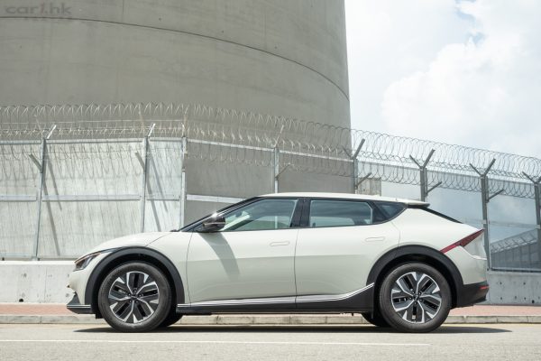 EV6 的車架含 75% 高拉力和超高拉力鋼,用前支柱、後五連杆懸掛。E-GMP 底盤車系中,EV6 會有稍硬的懸掛設定和稍粗的防傾杆來給予較穩定和跑格的操控性能。Integrated Drive Axle(IDA)「綜合式軀動軸」,將車輪「啤令」和橫軸合一以減輕重量。電池有 58kWh 和 77.4kWh 兩種容量。設有的 Vehicle-to-Load(V2L)功能,電池可對外提供高至 3.6kW 公率電能,例如可給手提電腦、電視、露營電器、電動工具或是另一部電動車充電。車系在香港有四驅的 GT-Line、後驅的 Deluxe 和測試的後驅基本 EV6 三個型號,「一換一」售價分別是 $498,800、$398,800 和 $348,800。GT-Line 採用 74kW(100 匹)頭摩打加 165kW(225 匹)後摩打,0-100km/h 加速需 5.2 秒,77.4 kWh 大電有 484km 續航力;168kW(229 匹)後驅摩打的 Deluxe 用 77.4kWh 大電,續航力最長,有 528km,0-100km/h 需 7.3 秒;圖中的基本 EV6,後驅摩打有 125kW(170 匹)輸出,58kWh 細電有三者最短的 394km 續航力,0-100km/h 也是最慢,需 8.5 秒。Kia 今年年尾在美國會推出一部有 576 匹的四驅 GT 型號,0-100km/h 僅需 3.5 秒,很勁。基本型號的主動安全系統有 FCA(Forward Collision-Avoidance Assist)前撞自動煞車、LKA (Lane Keeping Assist)偏航「嘟嘟」警示、LFA(Lane Following Assist)偏航扭軚輔助,兩部較高級的型號另有 BCA(Blind-Spot Collision-Avoidance Assist)、RCCA(Rear Cross-Traffic Collision-Avoidance Assist)、360 度泊車鏡頭。