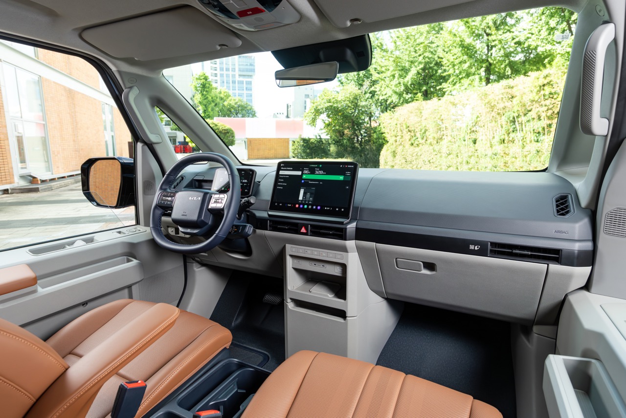 車內配備7.5吋儀錶及12.9吋中控觸屏,支援Android Automotive OS、Pleos App Market及Digital Key 2.0數位鑰匙(支援NFC、BLE與UWB)。Kia更設有車隊管理系統與第三方應用整合,方便營運監控。