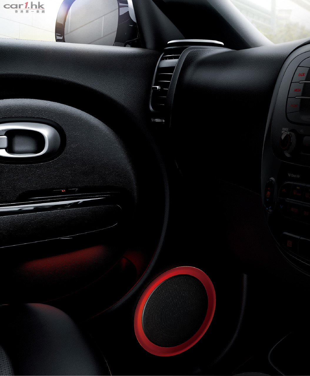 音樂是其中一個Soul的重點特色,在音樂 (Music)模式下,前門喇叭會透出紅光,並隨著音樂節拍跳動,而在氣氛(Mood)模式下,燈光顏色會自動七彩轉變,營造幻變氣氛。除了音響外,Soul配有一系列獨家玩樂的車身顏色,包括Mustard Yellow、New Vanilla Shake、Acid Green、Newport Blue、Inferno Red及雙色以配合客人獨特喜好。